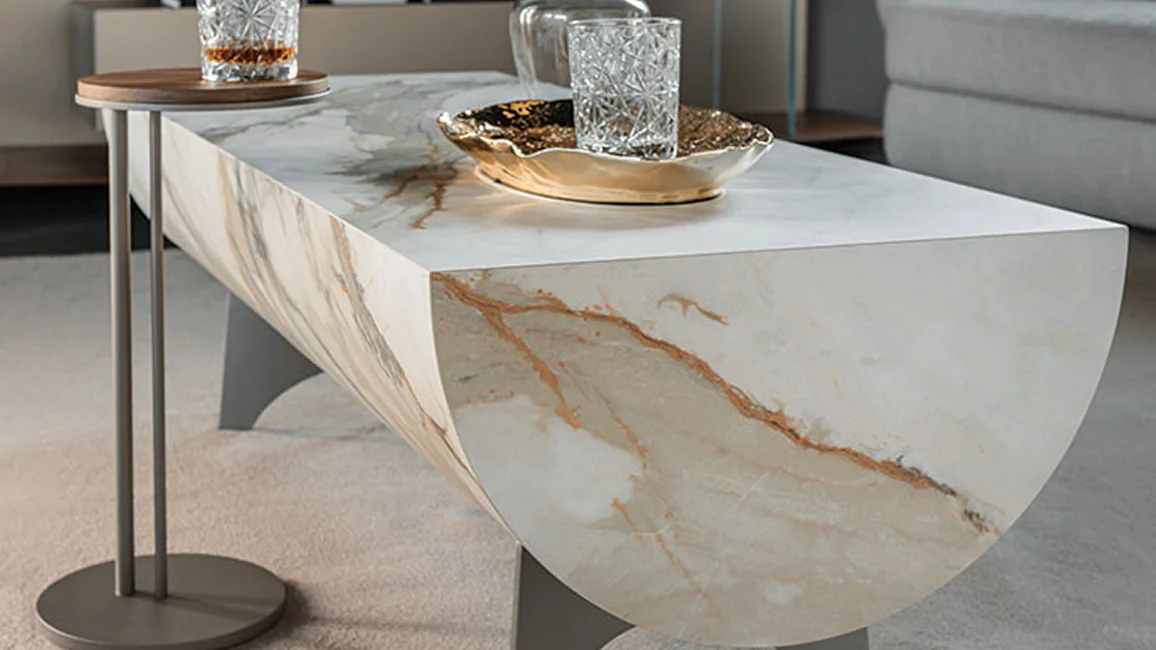 Caesar presents itself as a striking semicircular column with soft, rounded lines, crafted in moulded ceramic, standing out for its sculptural allure. The concept of this modern side table is inspired by the art of De Chirico, particularly the colonnades painted by the Italian artist in his dreamlike and mysterious settings; Caesar, in this sense, takes on the timeless charm of a great classic, perfectly suited for a contemporary living space such as yours. The cylindrical structure of Caesar rests on an elegant metal base, while the section above functions as a wide and practical tabletop.