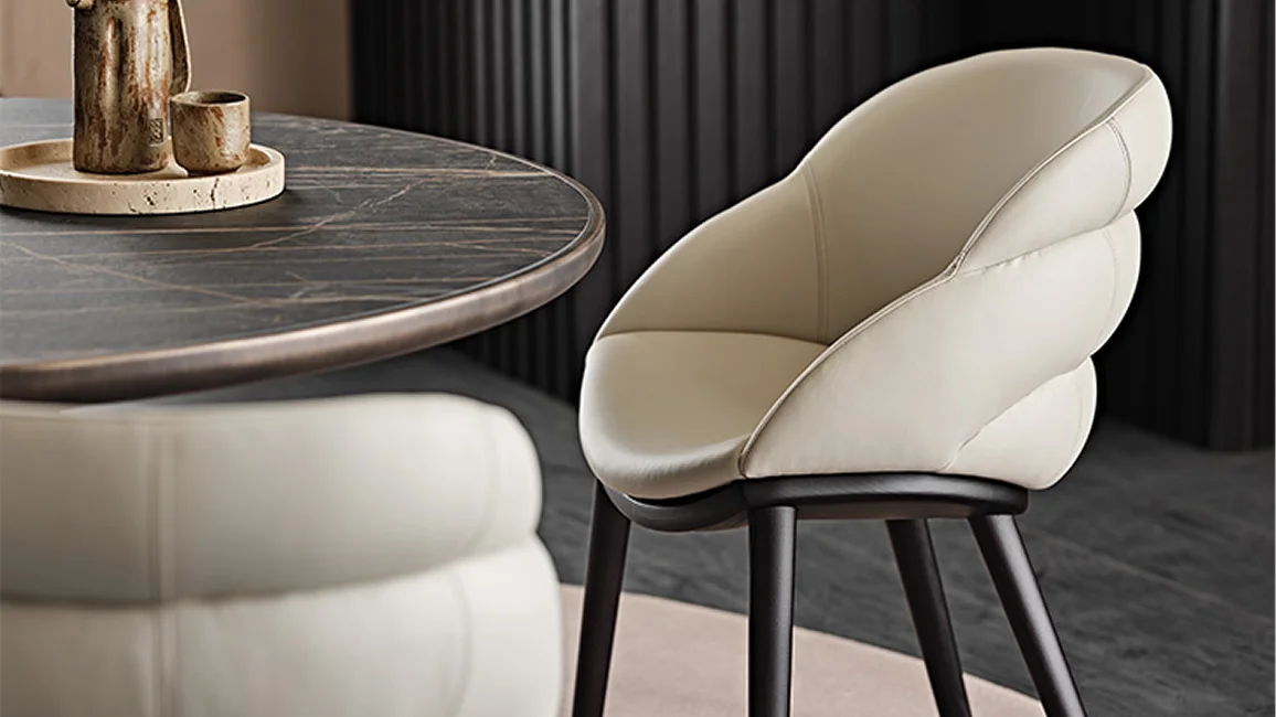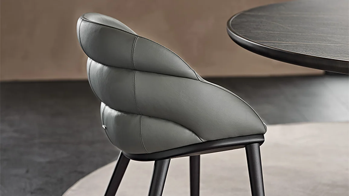 A design with sinuous lines that envelop the body, support posture and help make modern dining rooms cosy environments you can feel at home in. The Camilla family of armchairs and stools is the perfect example of a chair with upholstered arms that complements a room with the subtlety and sensuality you wish for in a home environment.