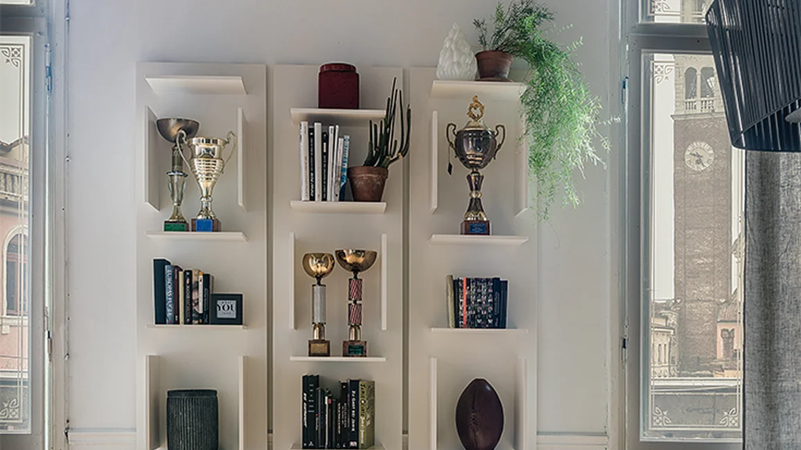 The wall mounted bookcase Fifty, designed by Luigi Trenti, is an example of an essential design that is able to meet the needs of the surrounding space and to decorate a wall with rigor and authenticity at the same time.