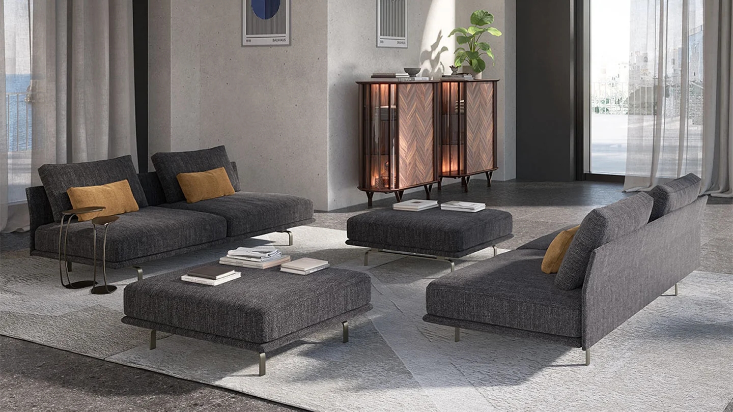 For a more spacious and cosy open space, choose Hayden, our armless sofa that elegantly completes the furnishing of hospitality and lounge areas. Drift away in the exceptional comfort of the floating seat, available in two different heights, and the high cushions, suitable for every postural need. The delicate, clean lines of this day sofa create the perfect balance between innovation and tradition; Hayden fits seamlessly into any context, from the centrepiece of a modern living room to a more classic setting. The high quality of the raw materials reflects the care for the environment that goes into the upholstery, which is made of a polyurethane foam of vegetable origin that offers an environmentally sustainable alternative and the softness you require.