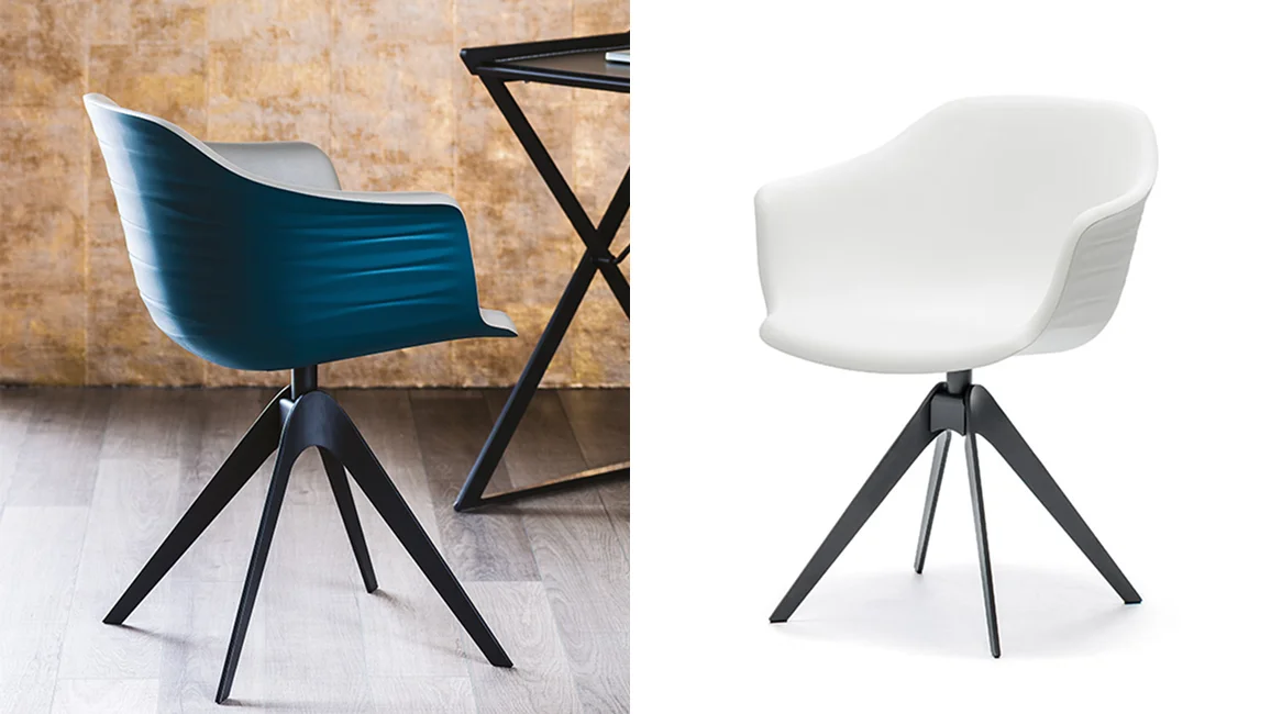 The small armchair Indy is a distinctive pice of furniture, charcterized by its original design. Its shell in hard plastic makes it a very comfortable chair, with greater comfort when compared with other classic hard plastic chairs. Particularly suited to furnish a home office and workspace design projects, Indy allows you to customize the office by choosing from several bases: fixed, swiveling, wooden, steel or with wheels.