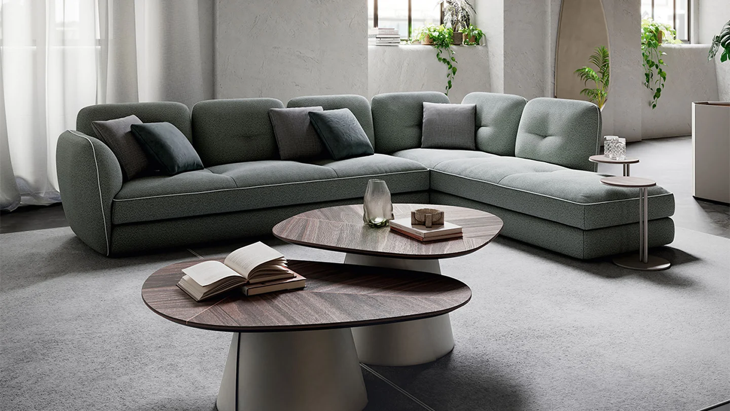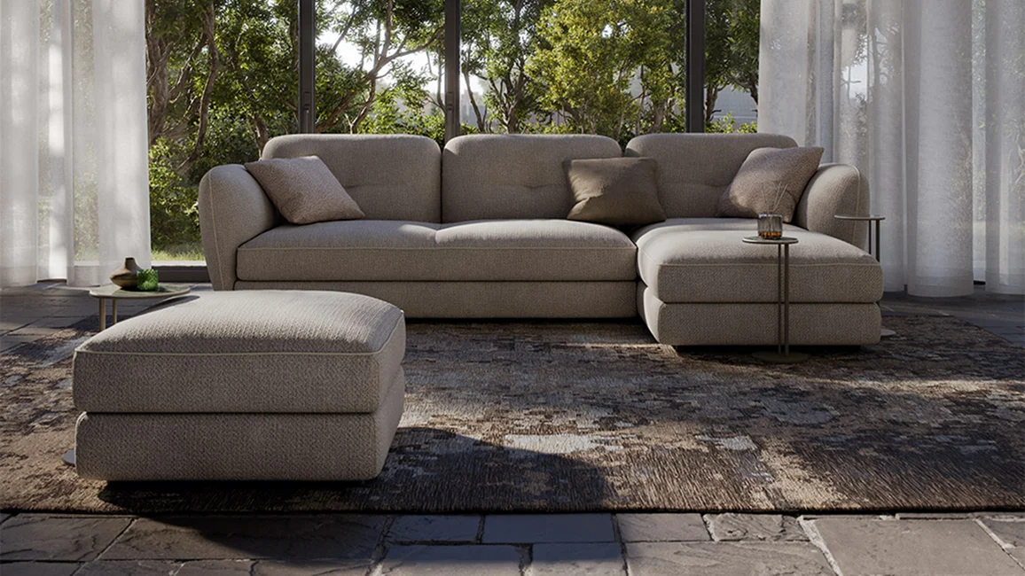Michael is not just a designer sofa; it is a unique experience that brings the warmth of a familiar landscape to your modern living room. Its charm is expressed through the enveloping seat of the semi-circular module —an elegant "amphitheatre" ideal for shared moments and perfect as a centrepiece in any space. With Michael, you can furnish any setting: the gently curved, upholstered cushions reduce depth, making it easy to place in more compact residential spaces and lounge areas. Also suitable for contract settings, this modern sofa showcases exquisite tailoring details, such as the soft stitching on the backrest and the refined grosgrain piping. When your well-being is our priority, a modular sofa’s flexibility is essential. Choose the perfect configuration by pairing practical footrest poufs with open backrests elements, thoughtfully designed to complement our modern coffee tables.