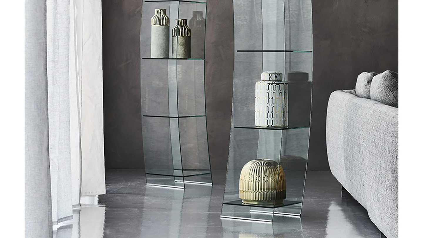 The Open Wind living room showcase is a refined furnishing accessory that leverage the room lighting.