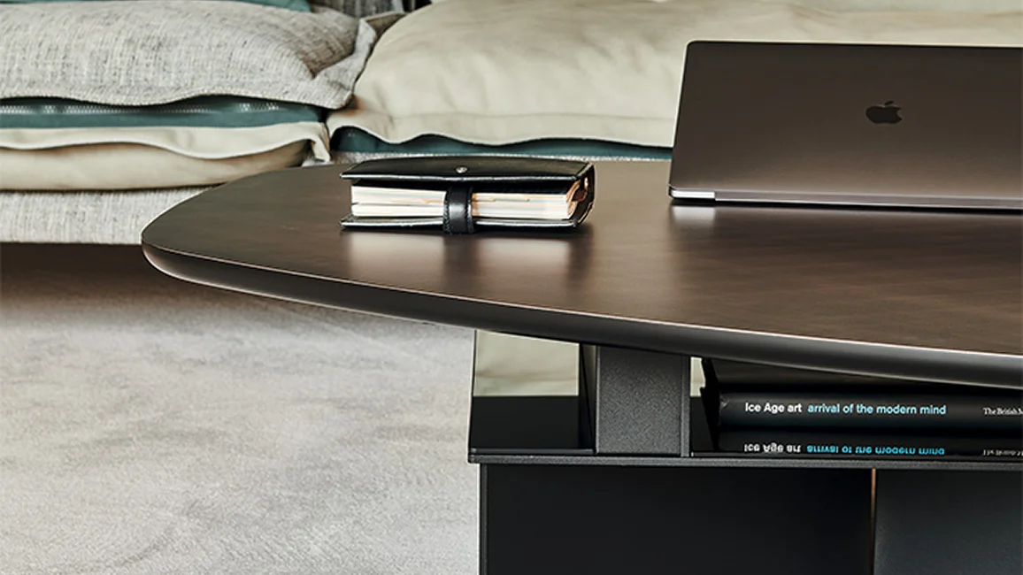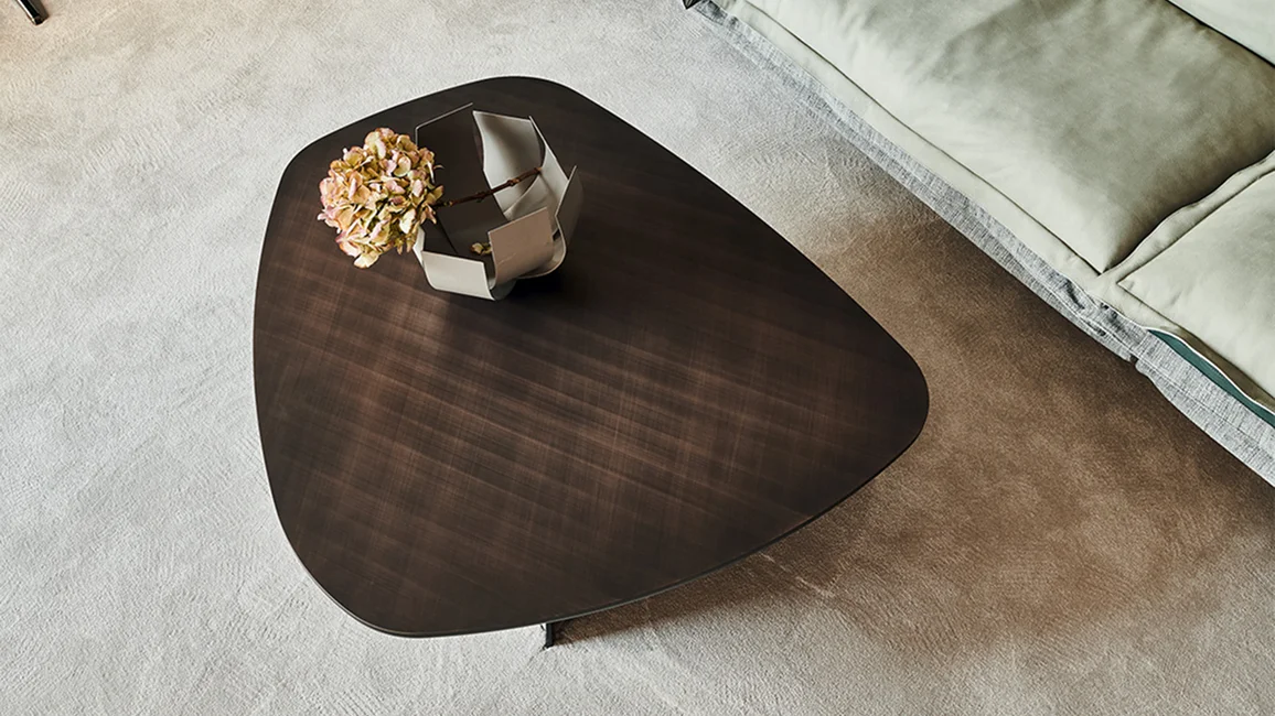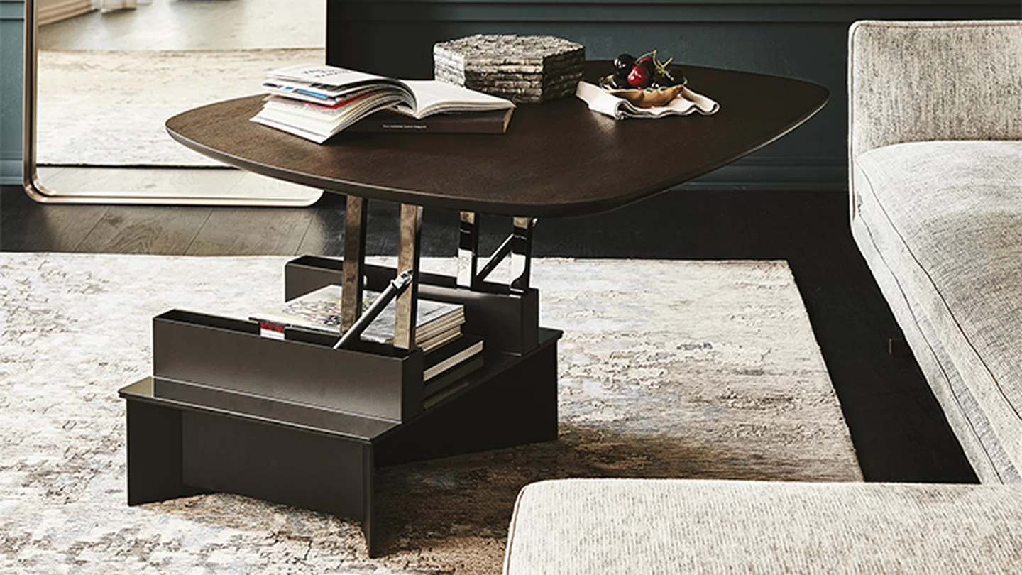 The living room is the most flexible place in the home. Many different activities take place in this area, which must be designed to address several functional needs. For this reason, Orlando has been conceived as a two-height transformable coffee table.The closed version, with a 32-cm-high table top, can be used as an elegant modern living room coffee table. Centrepieces and daily objects can be placed on the top, while the lower compartment, enclosed in the metal base, stores books and small objects. In its open version, this practical modern coffee table is 65 cm high. The Orlando open version can be used in many ways: to provide a resting place for digital devices, books or magazines or for serving an elegant aperitif to your guests.The wooden top of this adjustable-height coffee table is available in precious natural woods or finished with a handcrafted Brushed technique, which gives it a tactile and refined effect. The metal structure is embellished with a smoked mirrored glass top, very eye-catching, especially in the open version.