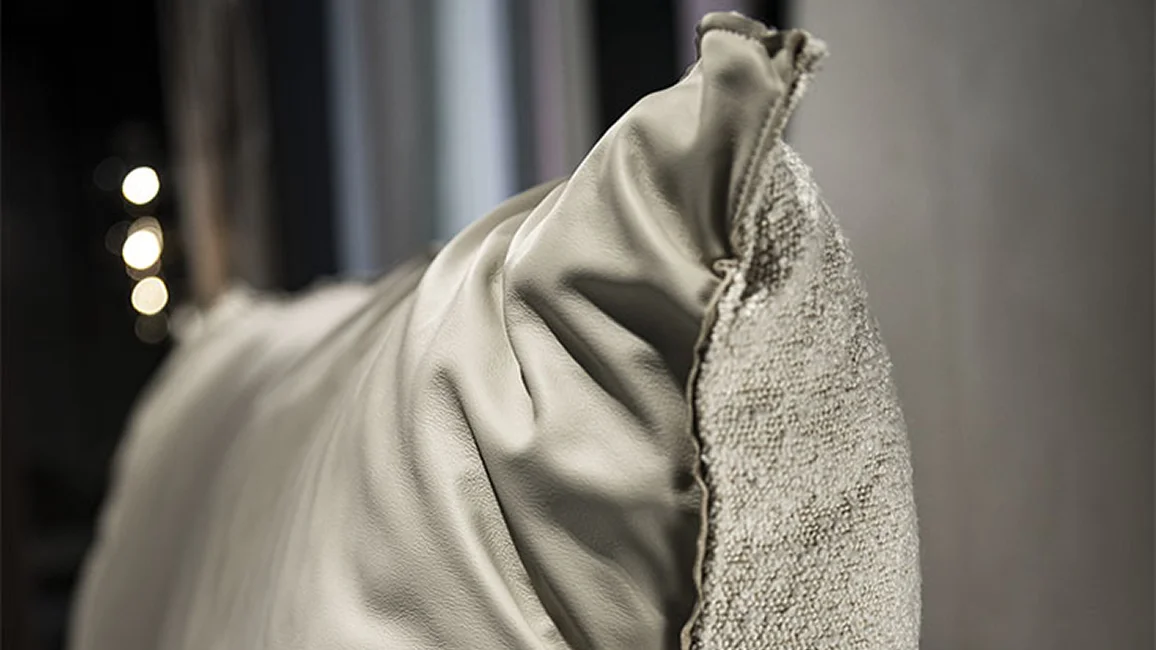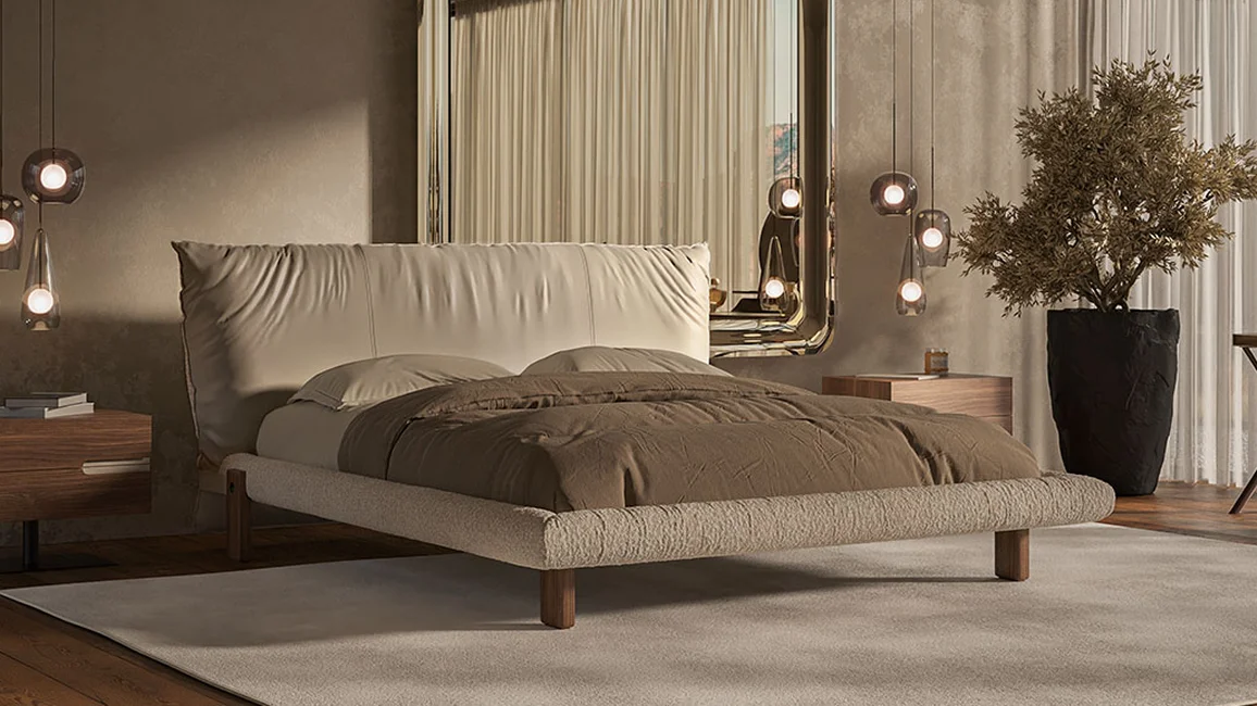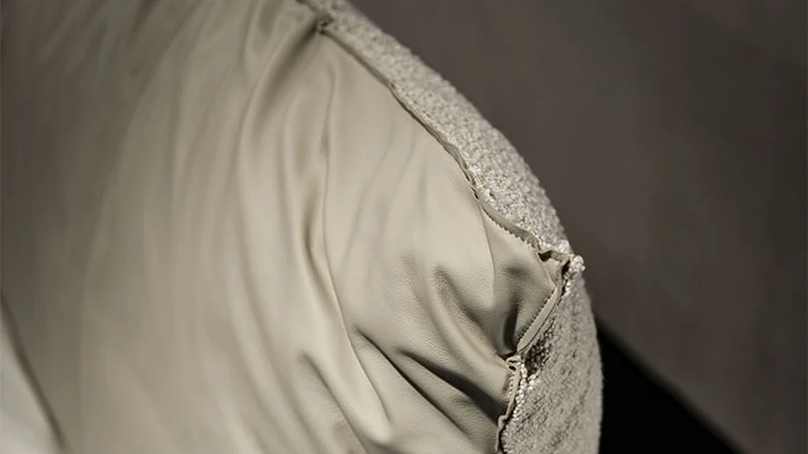 The most original detail on this modern double bed is the leather straps that join the headboard to the bed frame, accentuating the pillow recesses in the sides and creating soft folds that infuse a sense of wellbeing and comfort from the very first glance.