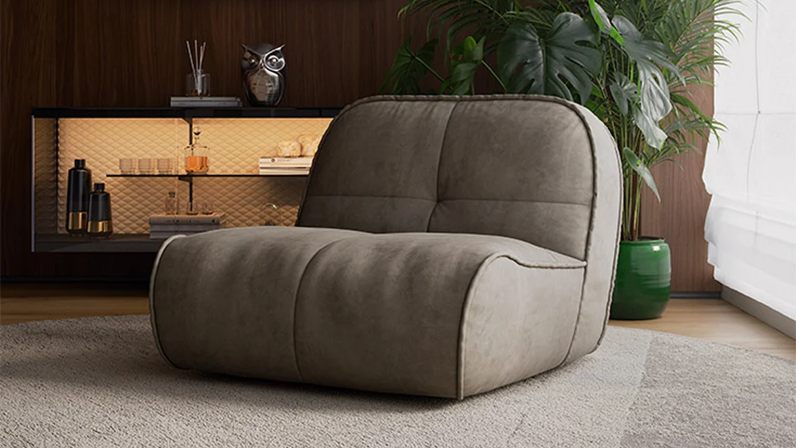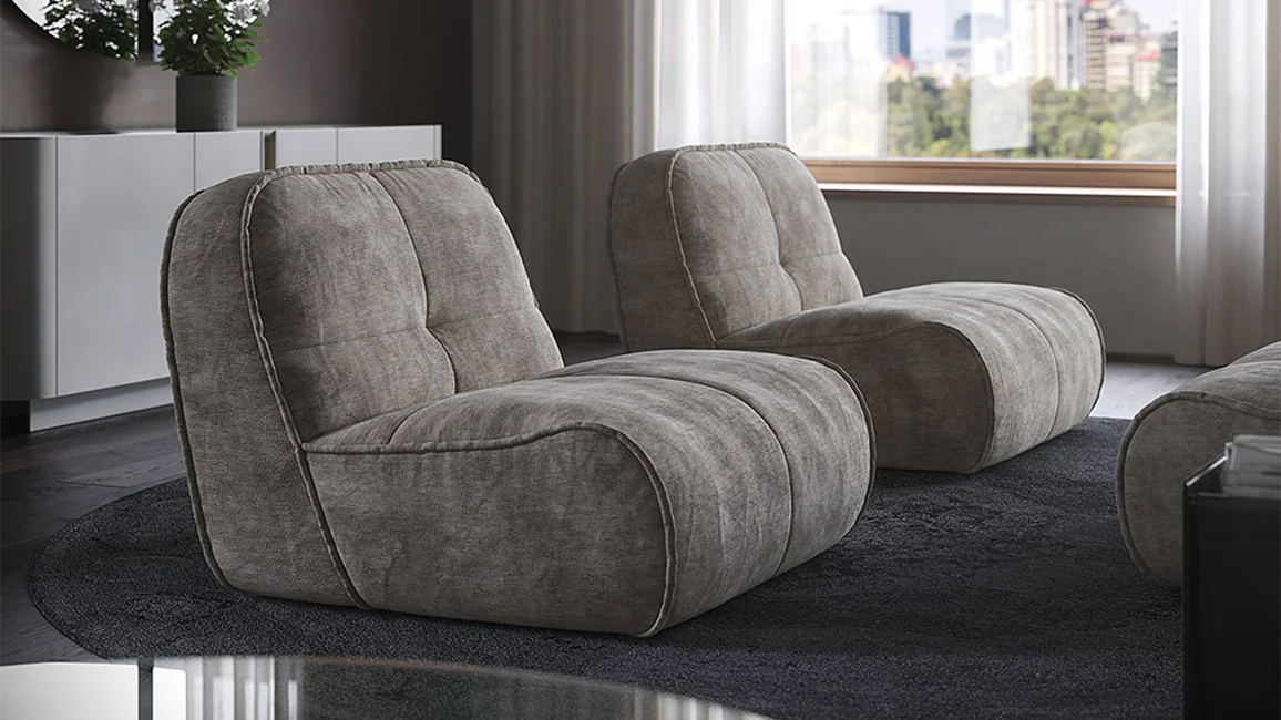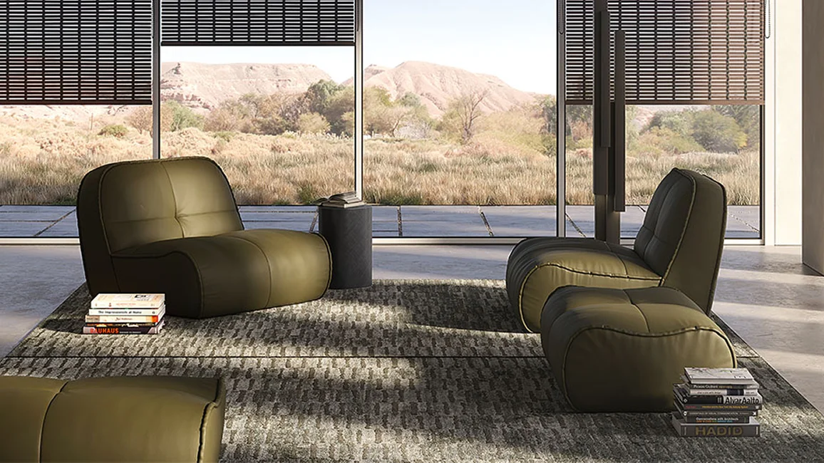 The Spencer design sofa is a contemporary twist on the iconic style of the 1970s. Its retro elegance makes the Spencer a vintage sofa and a timeless classic, just right for your modern living room. Its curved silhouette and wraparound upholstery provide the optimal balance between aesthetics and comfort, making it ideal for your home or contract space. The secret underlying its comfort is the low, informal seating: the almost invisible feet make it appear to be in contact with the floor, creating a unique relaxation experience, perfect for sharing convivial moments with your guests. The Spencer is available as an all-in-one 3-seater or 2-seater sofa, and it can be complemented with freestanding elements such as the armchair from the same range or the ottoman footstool or seat. Every detail is carefully considered: the stitching enhances the softness of the leather, while the wide selection of fabrics allows you to tailor it to your taste. Its full, compact volumes are punctuated by a quilting pattern inspired by capitonné design, which creates a soft draping and ensures a comfortable, ergonomic seat.