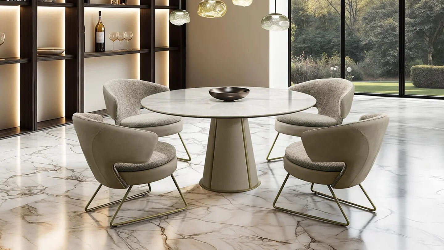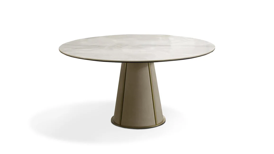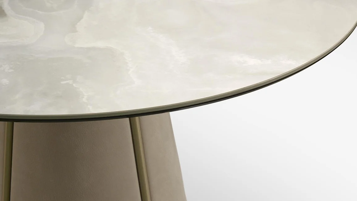Compact yet visually striking, Jago was created for informal contemporary settings, such as lounges, man caves, wine rooms or relaxation areas, where a hangout atmosphere needs to speak a distinctive aesthetic language. The standout piece of the whole composition is the conical central base which anchors and grounds the whole structure like a sturdy tree trunk. Its sculptural silhouette is enhanced by refined detailing, such as the carefully inserted metal finishes which discreetly define the sharp geometrical beauty of this piece of Italian furniture.