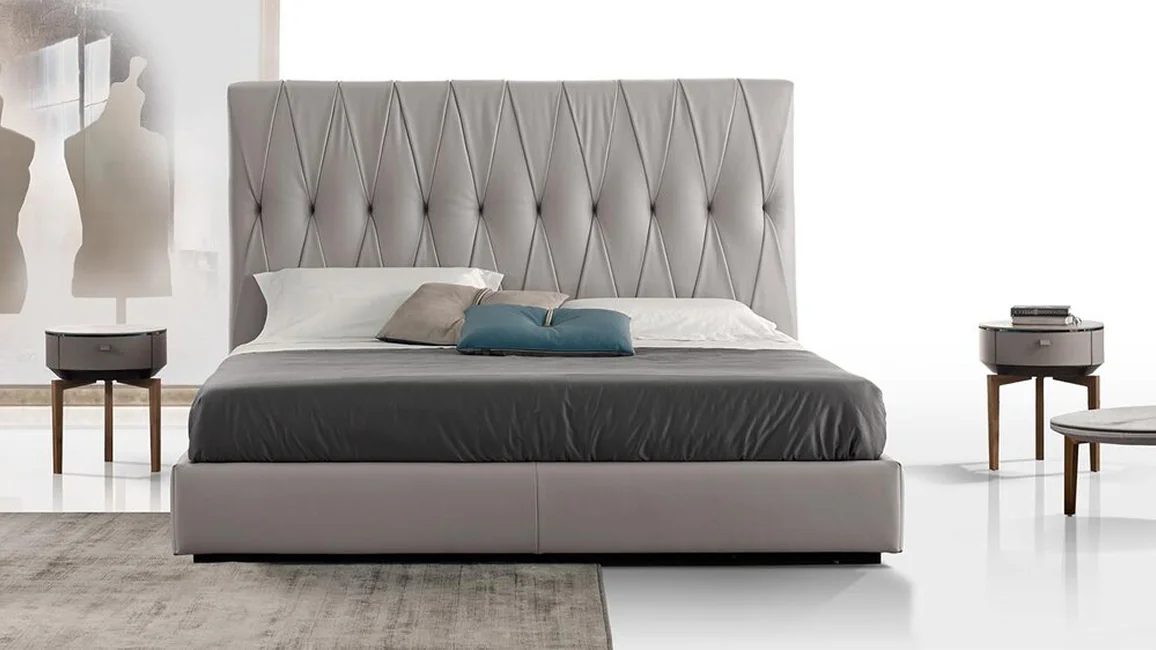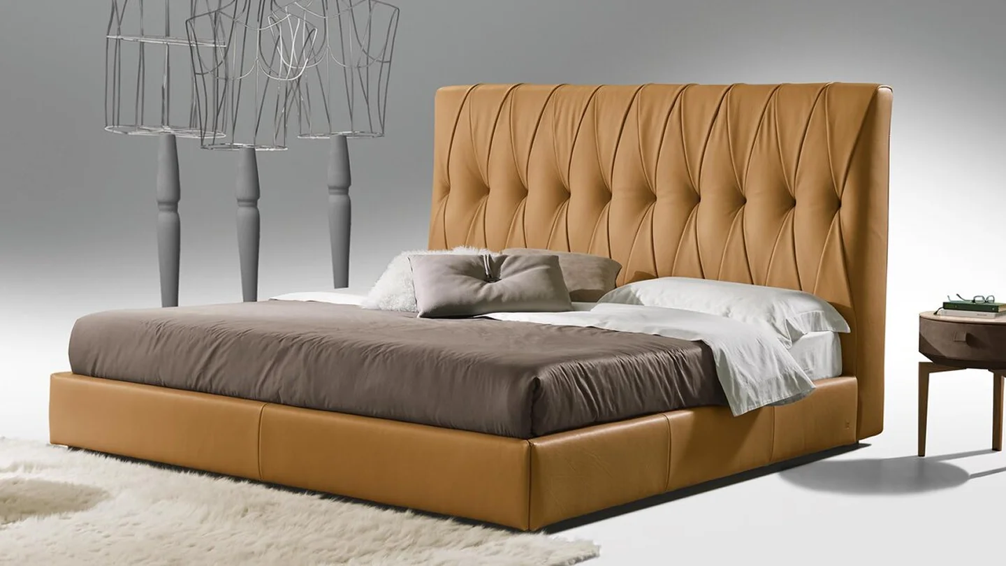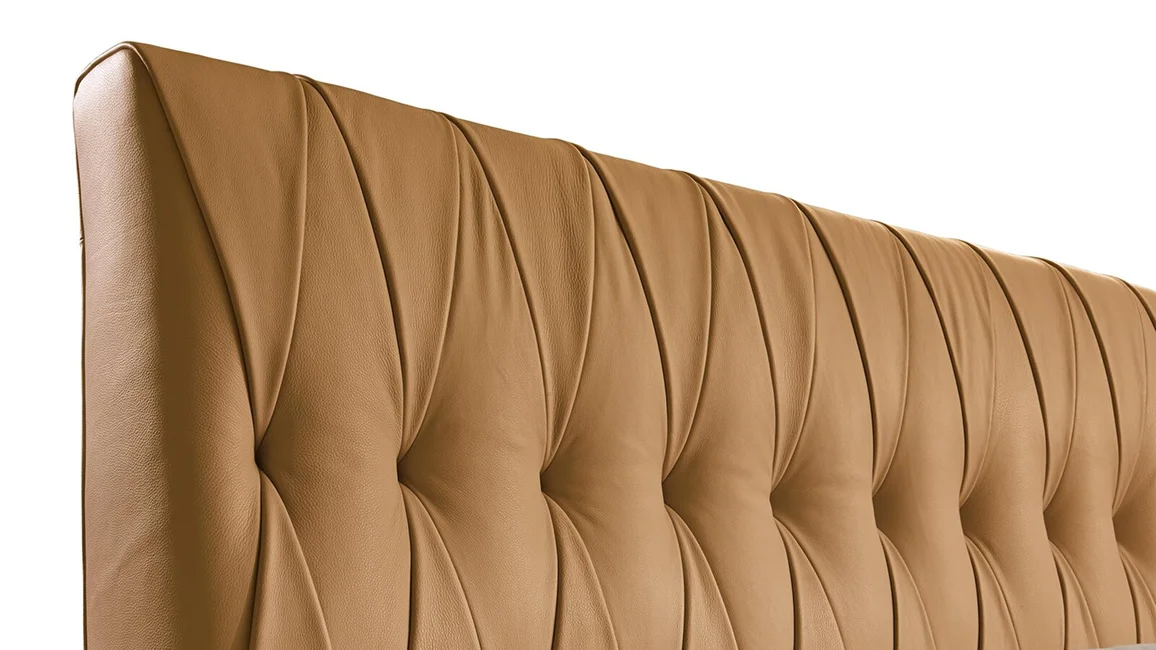 Marlon Night is a king size leather upholstered bed with a strikingly dramatic design and a harmonious blend of classic charm and modern flair. Reworked with a contempo feel, the exquisite tufted detailing bespeaks its exquisitely artisanal core. The tufted detailing embellishes the high backrest and highlights its fine design, imbuing it with a bold vintage vibe that is bound to elevate any bedroom to extraordinary heights.