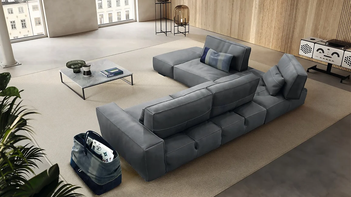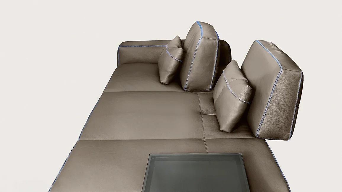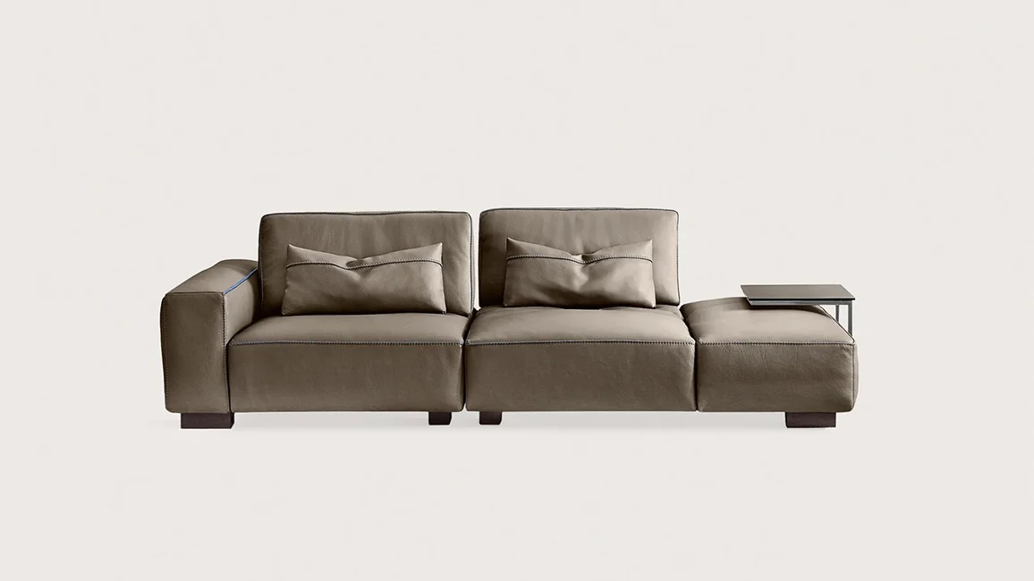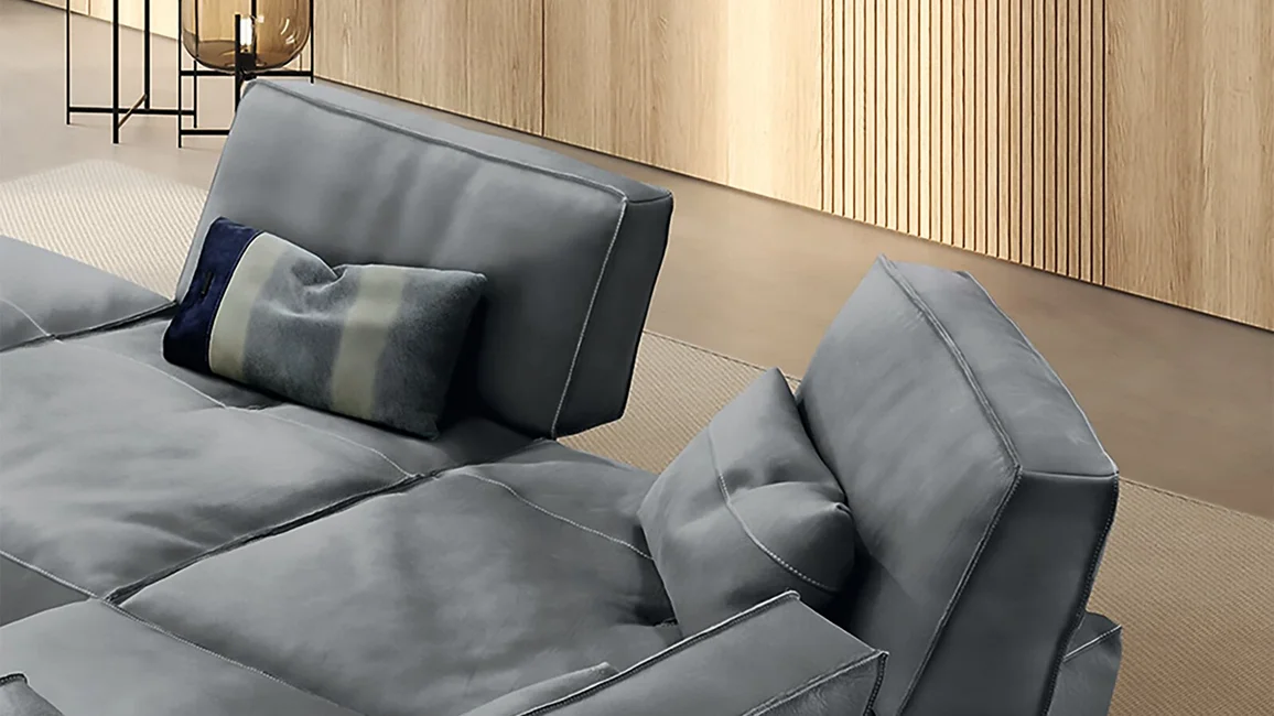 Soho is a unique leather sofa that best represents Gamma's ability to combine design and practicality, without ever compromising on our sartorial skill. Soho is one of the firm's iconic models, featuring inviting, generous lines that promise soft comfort thanks to the down lining in the seat and backrest. The generous leather templates, the main feature of the seat and the backrest, enhance the natural beauty of Gamma leather. The thickness of this leather upholstery can be seen and felt in the edge-to-edge seam stitching. A shifting mechanism fitted to the backrest, including the corner, allows you to choose between two depths that can be adjusted according to your needs, for superior comfort.
