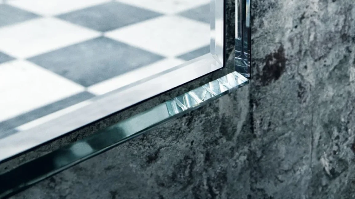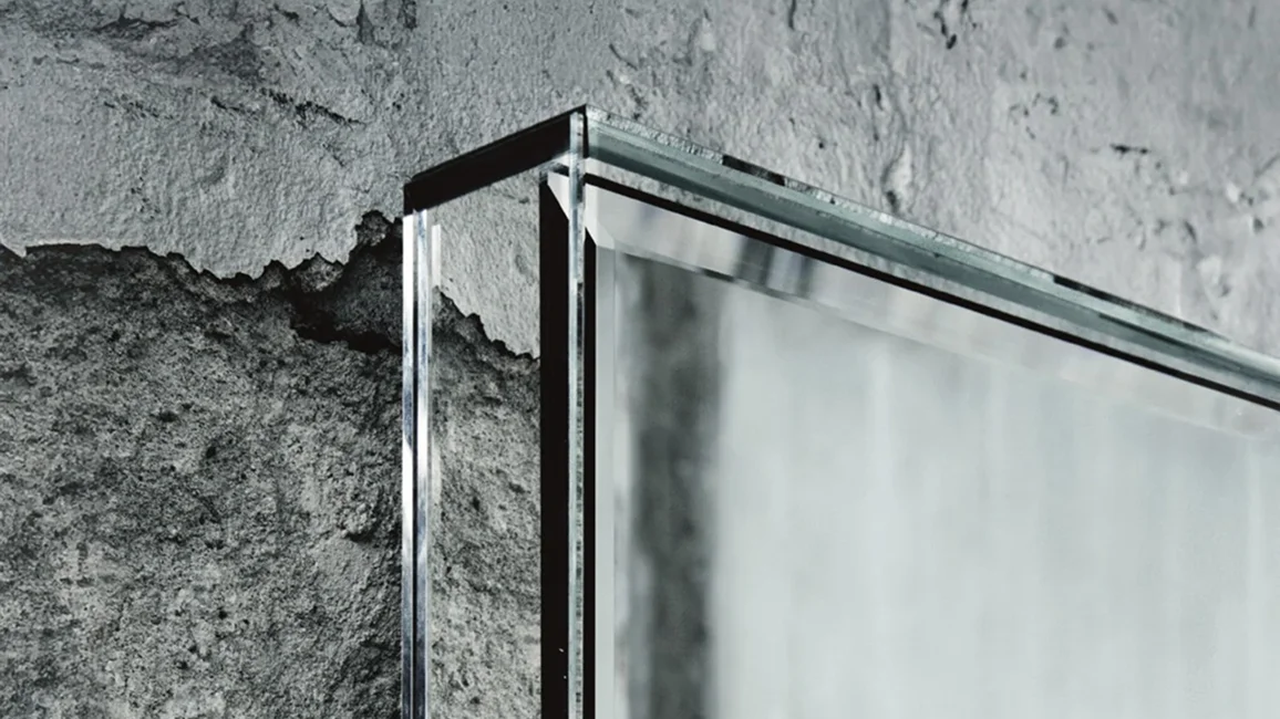 Mirrors available in rectangular and octagonal shapes, embellished by a frame in silver-plated transparent extralight glass 12 mm, decorated with shiny chamfers and facets.