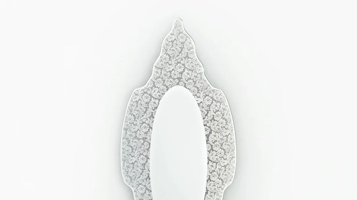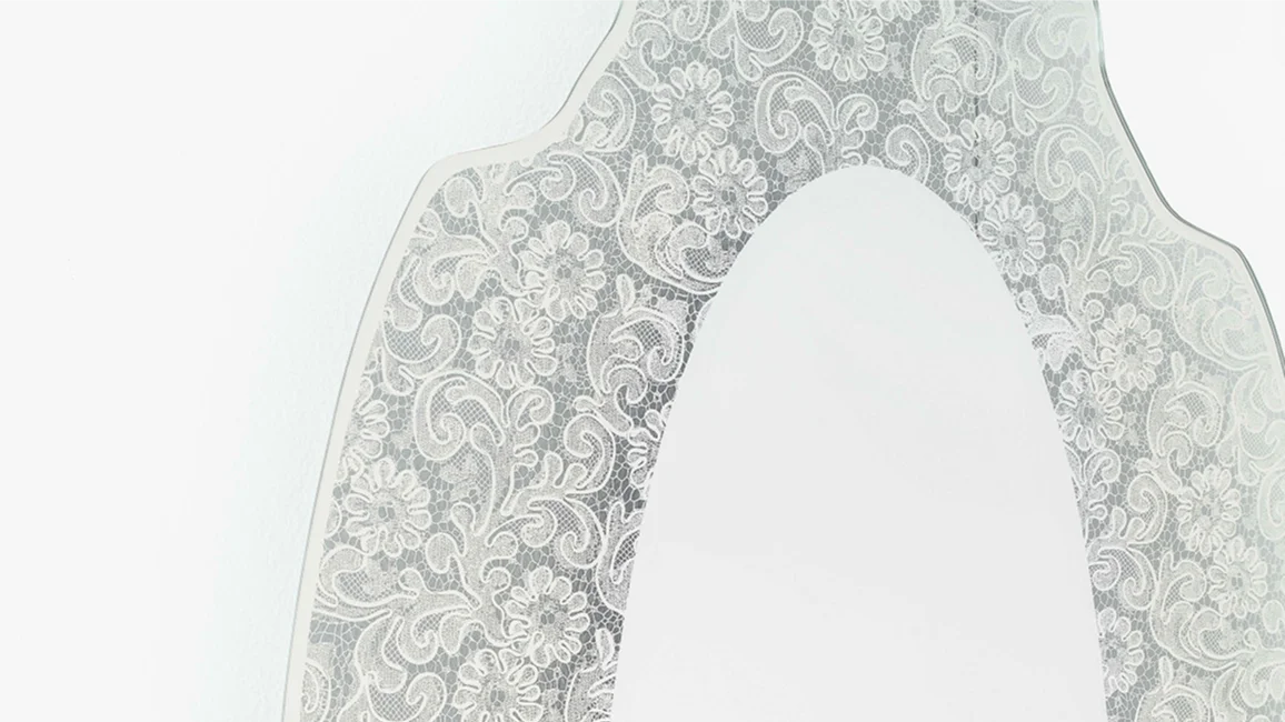 Re-launch of a historic mirror designed by Cinzia Ruggeri for Glas Italia in 1989. Spizzo is a shaped mirror, available in two sizes and decorated with a delicate mirrored lace insert.