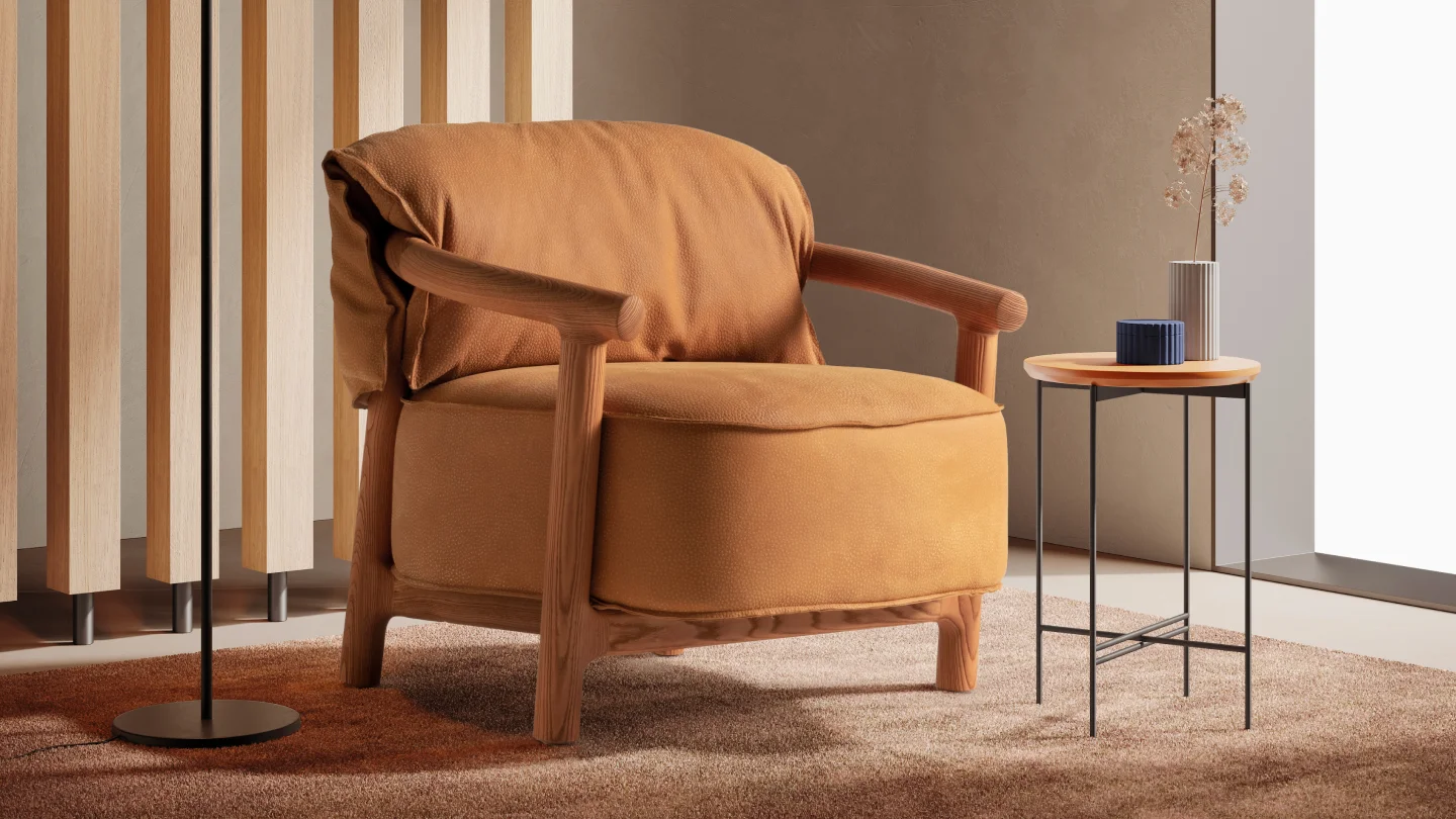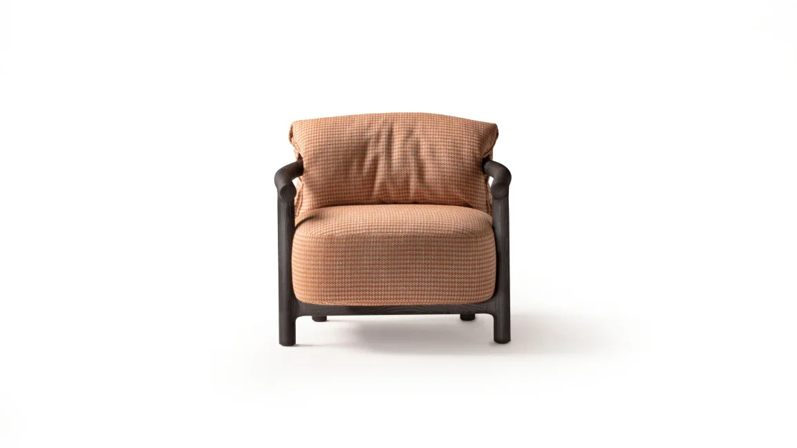 FRAME - fir-wood (Picea Abies) and plywood with elastic straps. SEAT - polyurethane foam with different layers and “memory foam”, covered with 200gr/M2 resin-bonded polyester coupled with elastic polyester fabric. COVERS - fixed both in fabic and in leather, not removable.