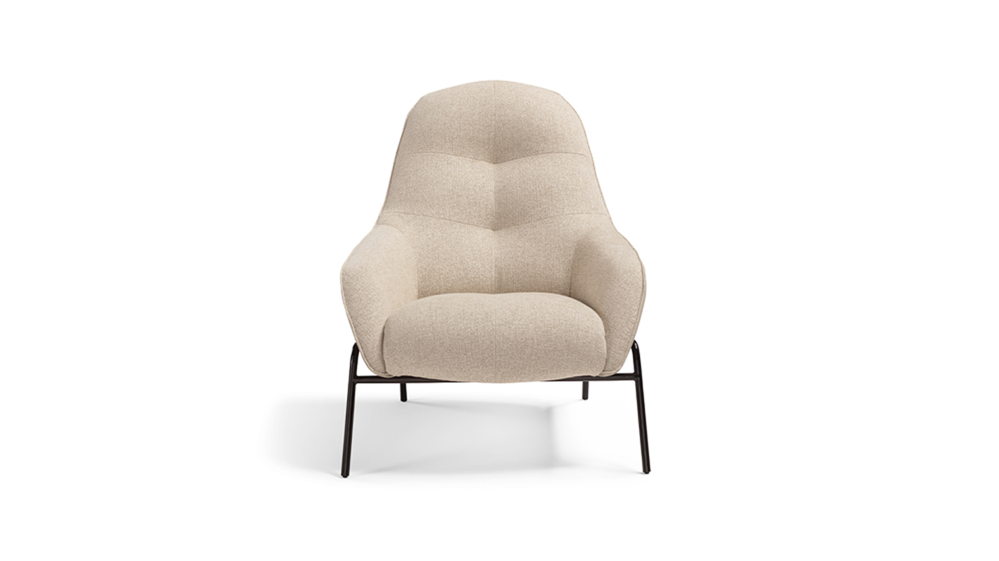 The classic tub chair finds a contemporary reinterpretation through the linear and essential design of Ariel. Thanks to its enveloping and welcoming comfort, enhanced by the soft backrest that forms a single upholstered element together with the armrests, this model defines a small parenthesis of relaxation in which to devote oneself to reading or to one’s favourite pastime. Placed on a tubular metal frame, Ariel offers a double type of cover: leather on the outside, and a quilted fabric for the inner part padding. All finished with a fine seam edging. Matched in combination with a versatile square pouff.