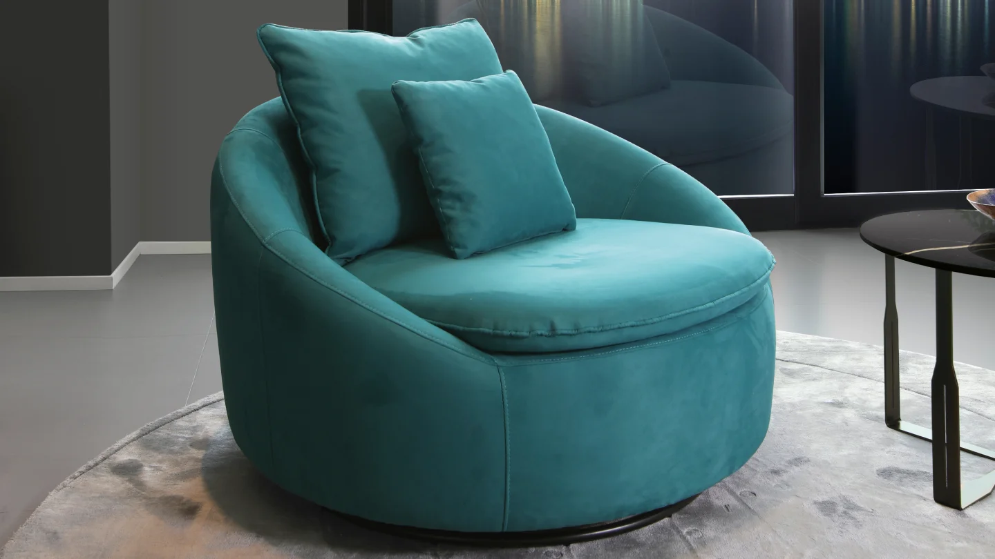 a balanced and harmonious design: Grace, an armchair with essential lines that expresses a refined and timeless elegance. Equipped with a rotating mechanism, it stands out for its enveloping shape, fits perfectly into any context and best expresses the Miki Ferrari DNA.