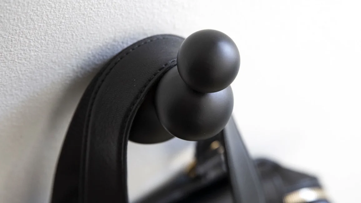 Wall hanger in turned beech wood. Available in natural wood or white or black lacquered. An element that is no longer just functional but above all decorative which, thanks to shapes and colors, communicates more and more with the style of the entire domestic space. Single or multiple, the solutions designed to characterize every need for entrances, sleeping areas or bathrooms.