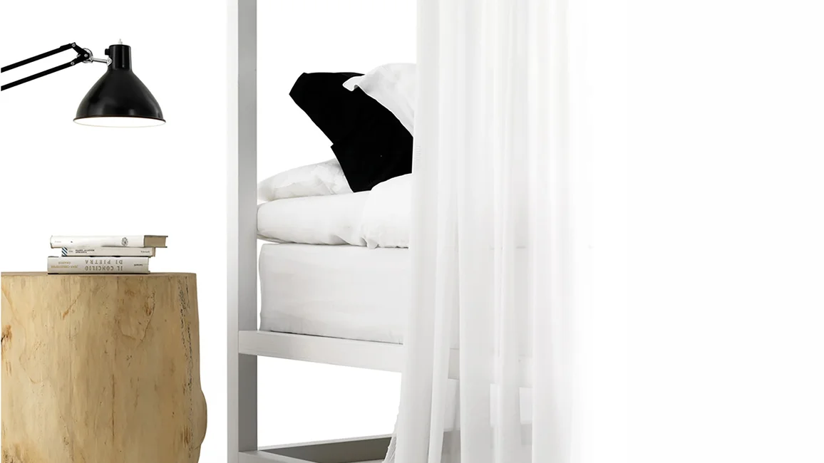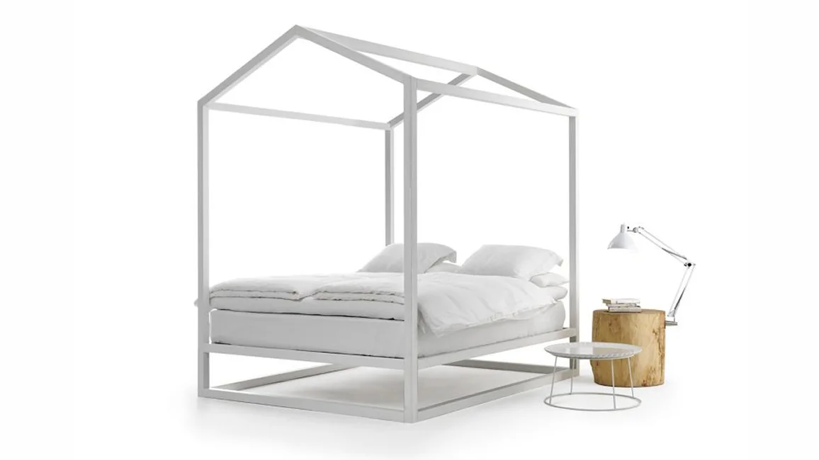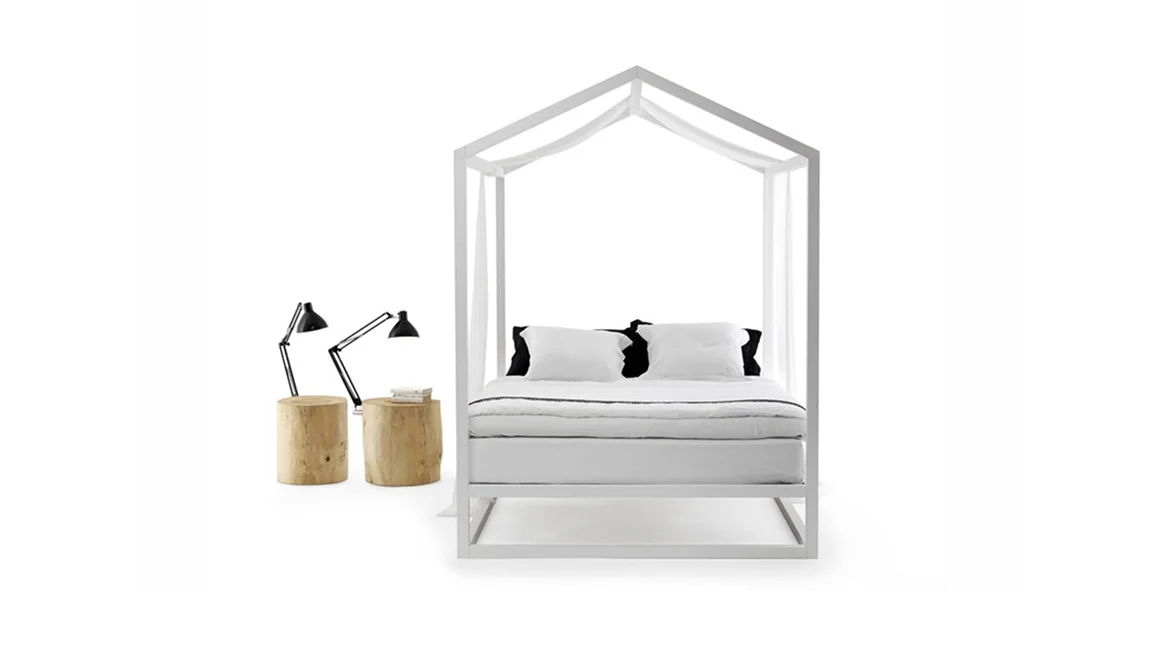 Casetta in Canada is a four-poster bed in solid wood structure of lacquered white ash. It recalls in its structure the shape of the house designed by children, as a refuge where to sleep comfortably. The absolute protagonist of your bedrooms.