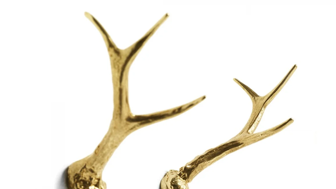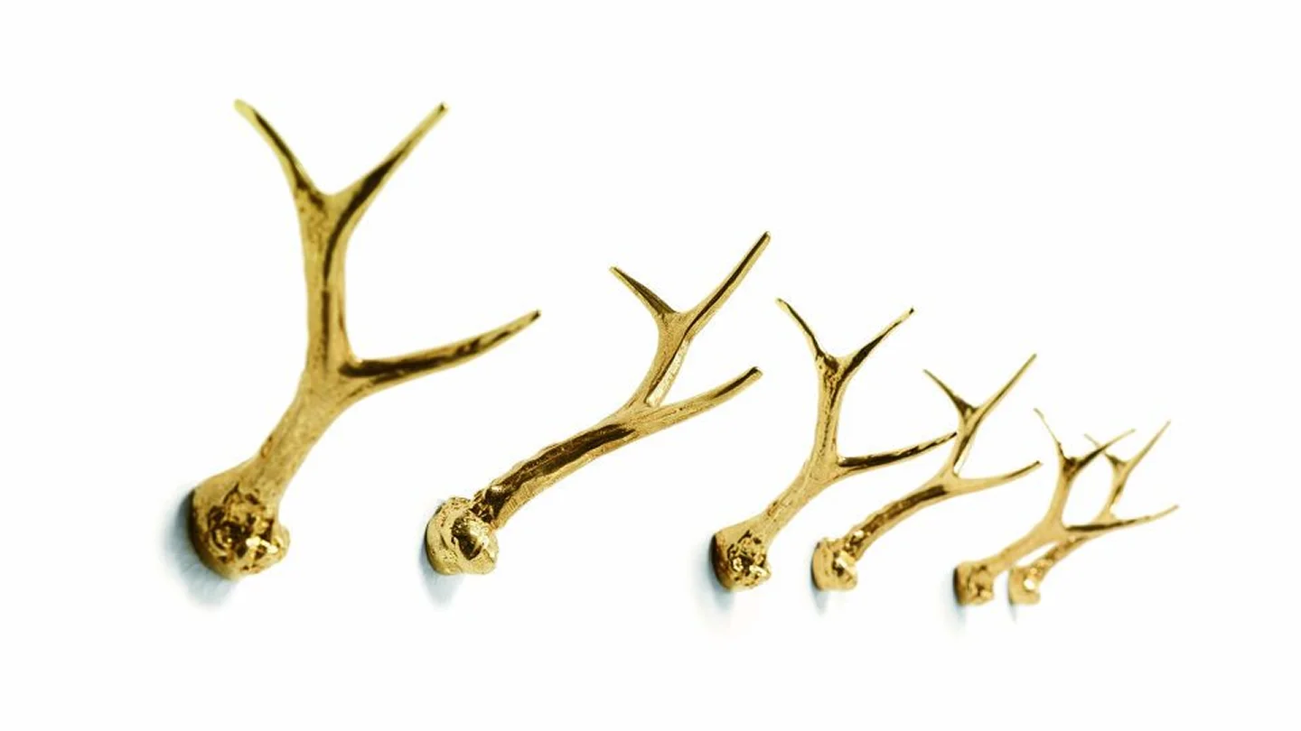 Hubertus is a pair of wall hanger horns in brass casting in a polished finish. Unconventional decidedly out of the ordinary, a well recognizable object becomes functional in an original way. Also available on a mirror and on a wooden larch panel.