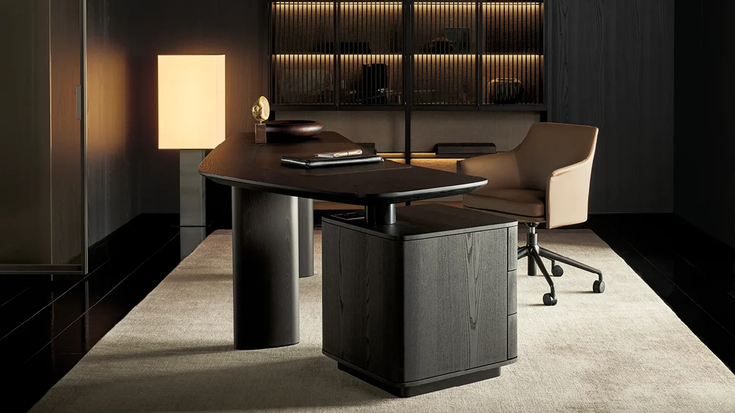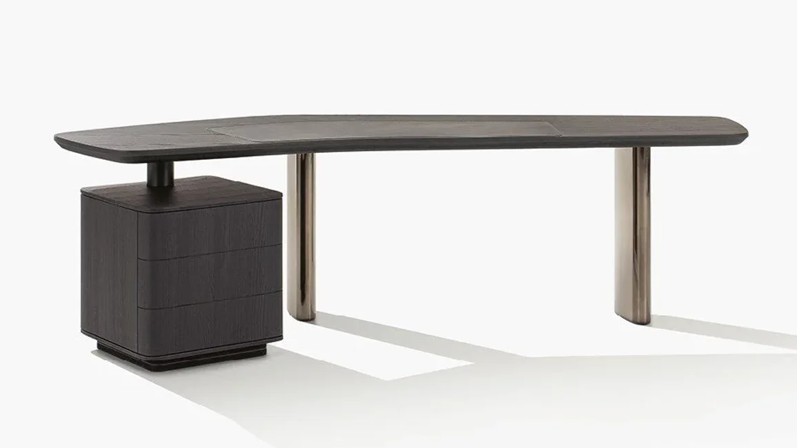Jean-Marie Massaud reinterprets the Adrien table to create a desk designed for the modern home office. A bold and eye-catching element, which is also perfect as a centrepiece for a room. The Adrien desk is available in different sizes and can be complemented by an integrated side drawer unit, which enhances its functionality.