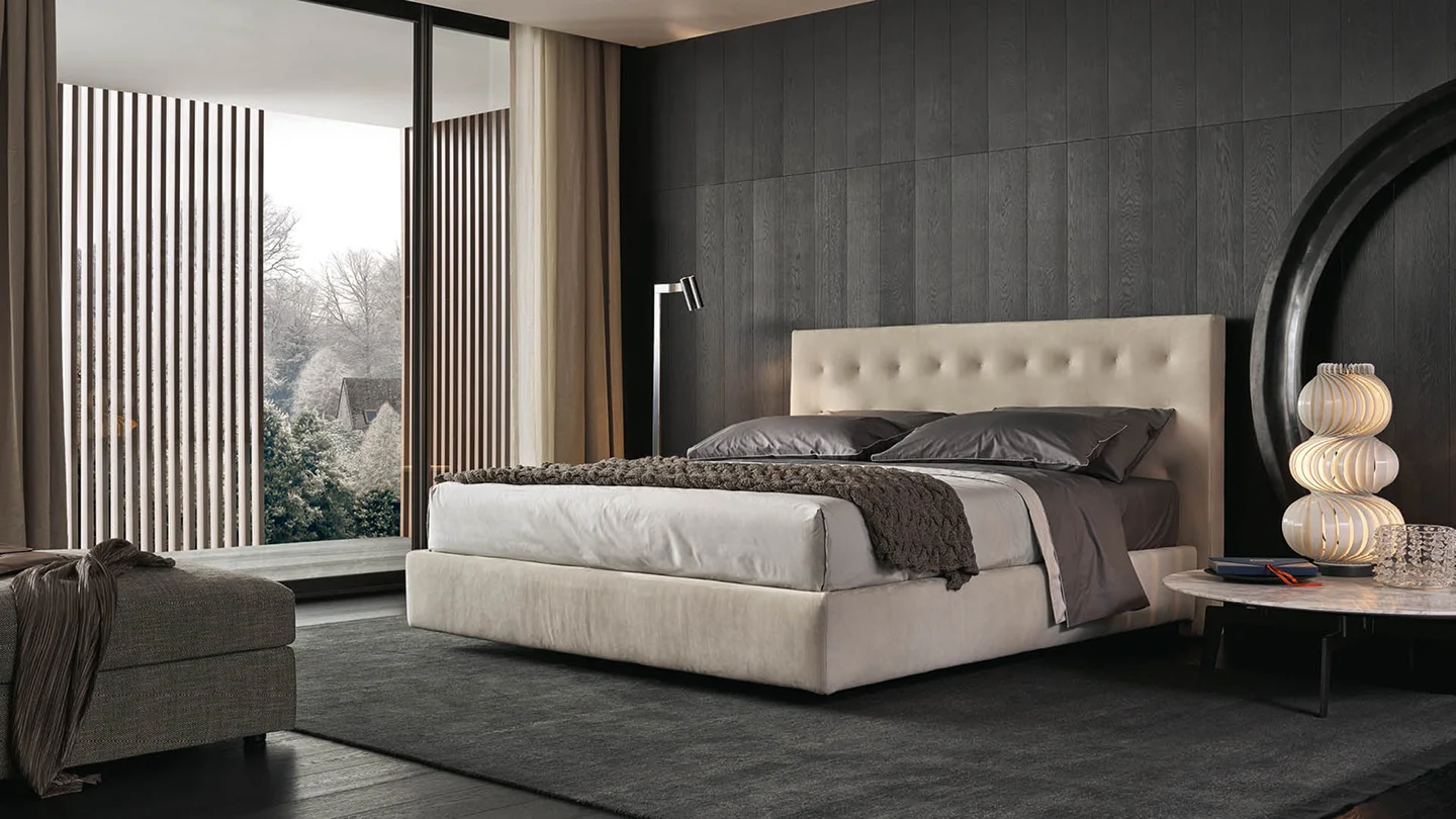 Arca is a versatile bed, which can be customised by adding two types of headboard to the upholstered base: the quilted one lends a more romantic feel, the plain one creates a more understated setting. A design by Poliform that interprets different styles, available for a wide range of mattresses, also in a single bed version. In addition to the fixed and anatomical bed bases, Arca is also available with a folding bed base featuring a storage compartment.