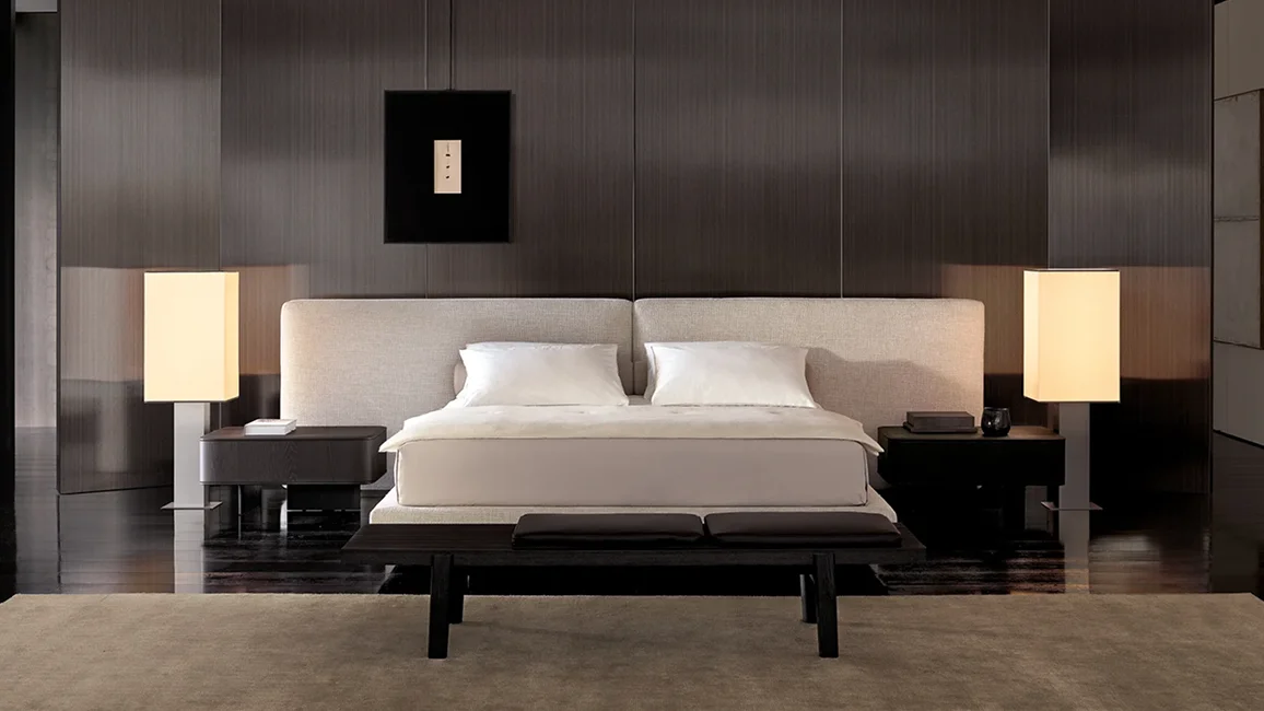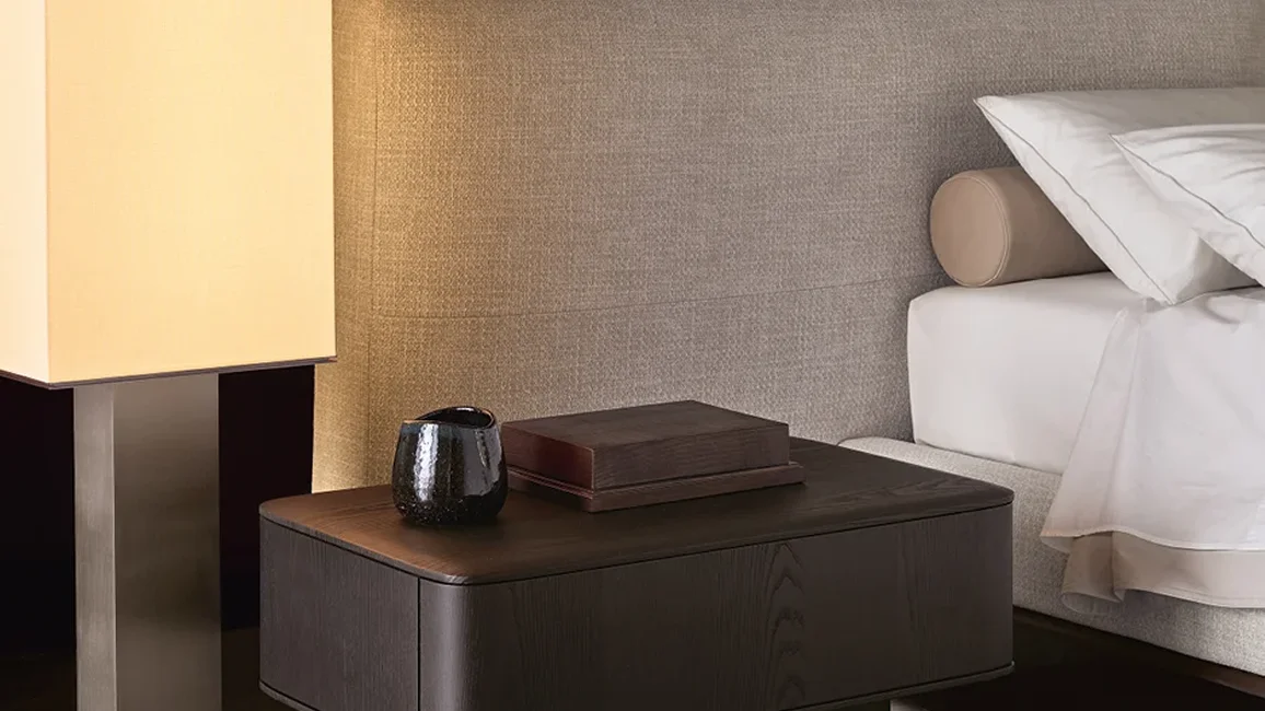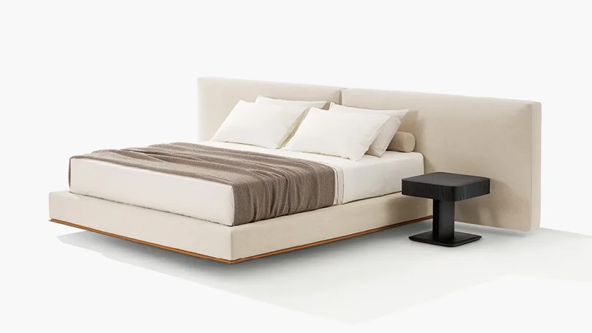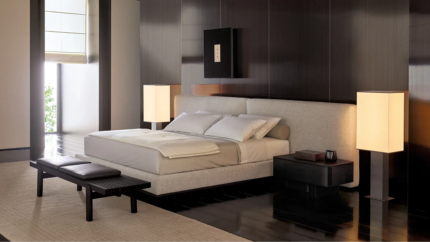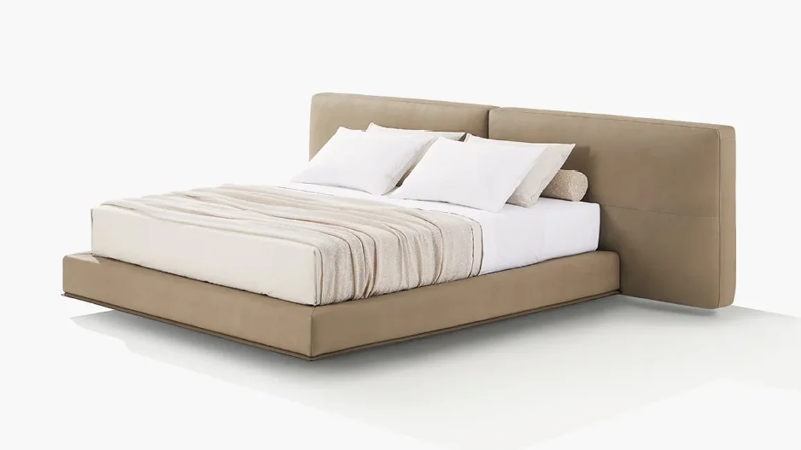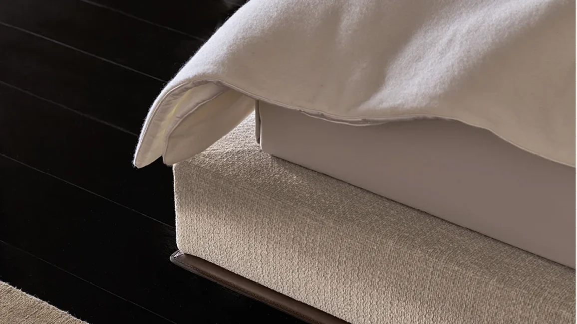 In the Brera collection, elegance is expressed through a horizontal, clean and contemporary style. This is also the case for the bed, with which Jean-Marie Massaud brings the idea of a domestic landscape with a strong architectural undertone to the bedroom. The leather base recalls the couture details of the sofa, as well as the foot and the large headboard.