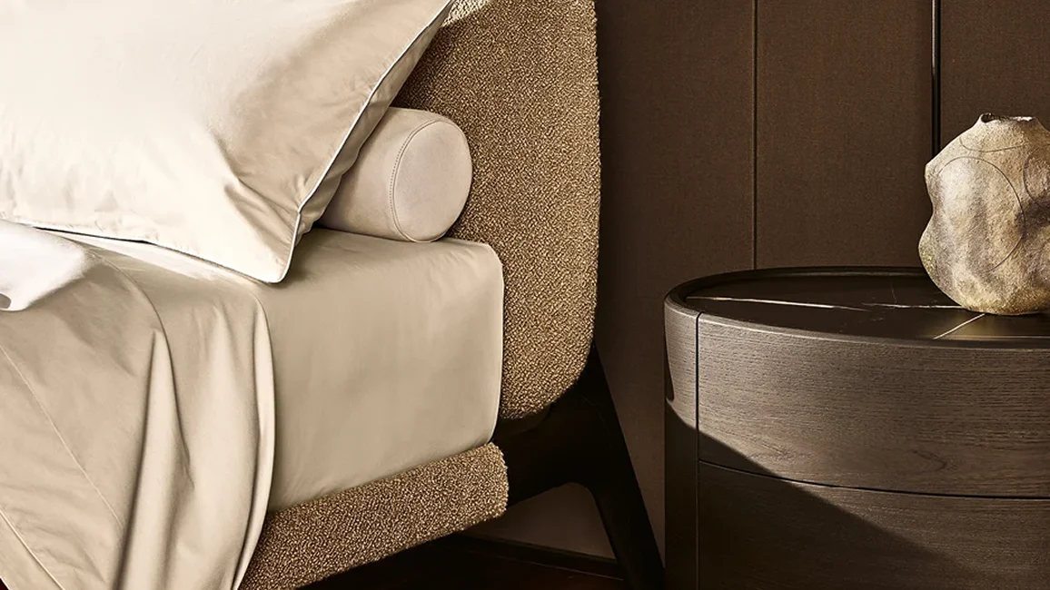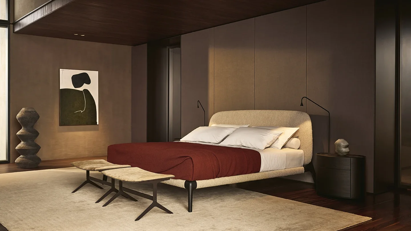 Curve was born from the need to create a light and essential bed, which embodies Poliform’s distinctive elegance and timelessness. Emmanuel Gallina’s work continues in the vein of the Curve collection, stripping down the material to achieve a delicate and contemporary lightness. The padded headboard, upholstered in fabric or leather, is extremely soft and comfortable.
