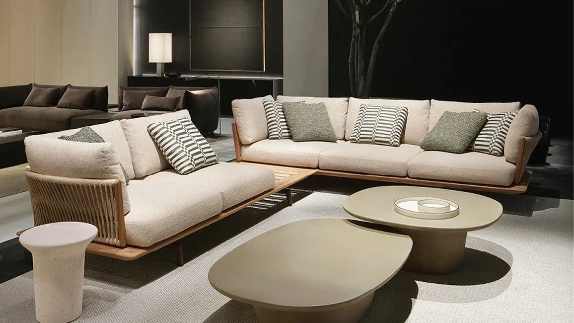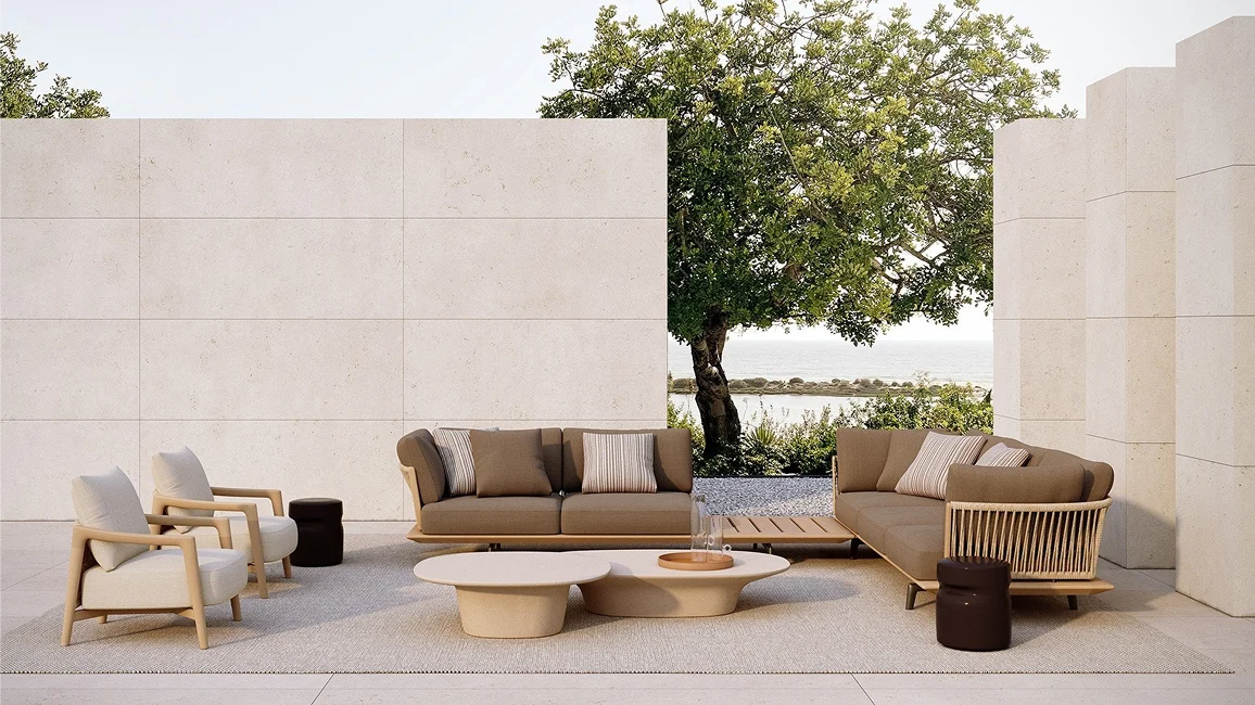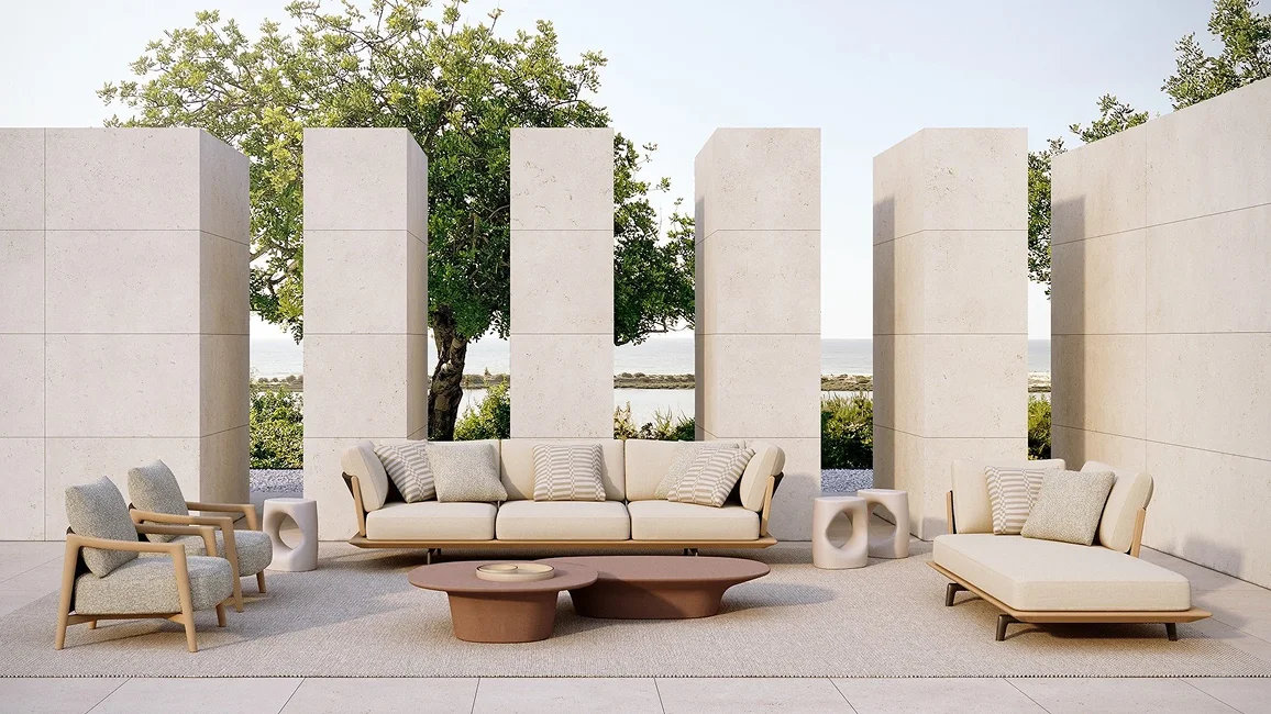 the Lagoon modular sofa is inspired by the elegance of the nautical world and the streamlined silhouettes of sailing boats. A project designed for the most exclusive of outdoor spaces, capable of combining formal precision with a welcoming atmosphere. The light and refined structure accommodates a large seat with double cushions that guarantee a high level of comfort and versatility, perfect for moments of relaxation in the open air.