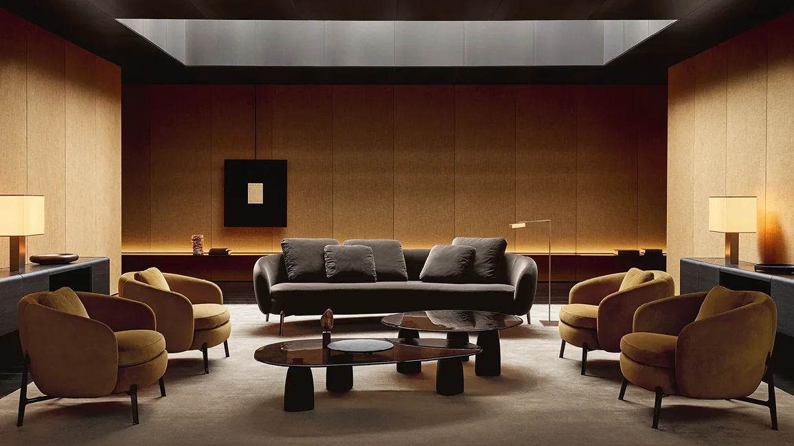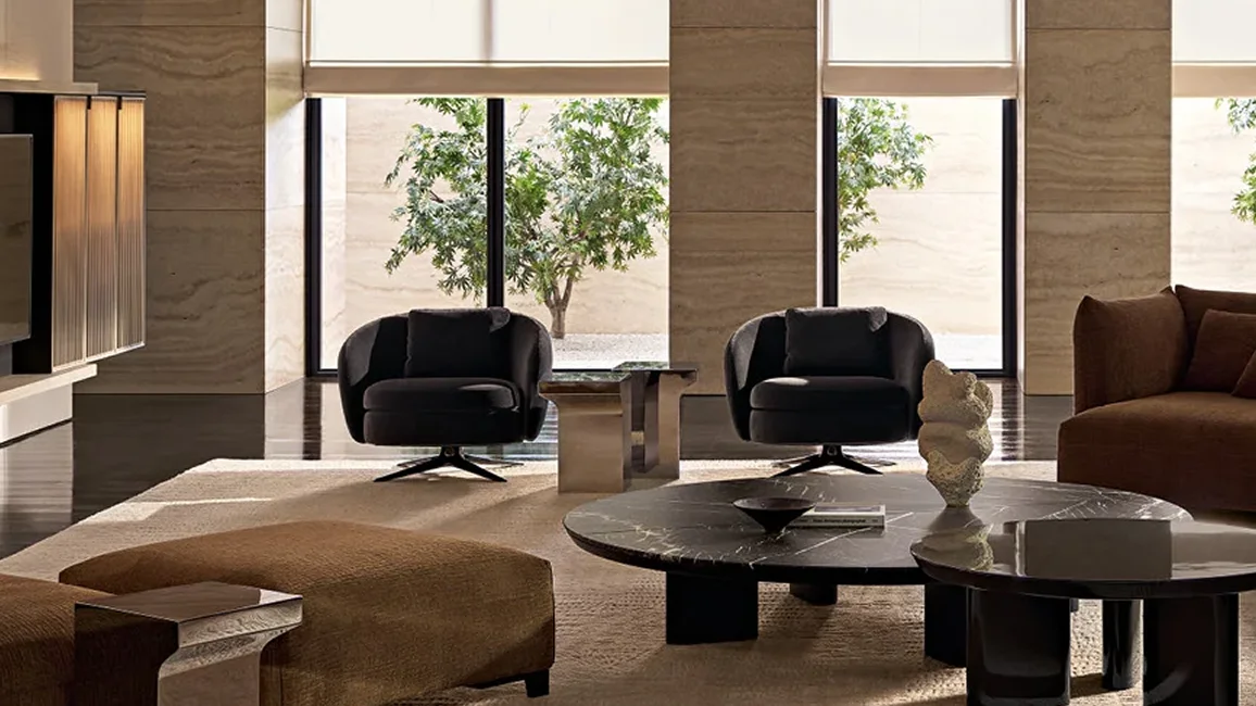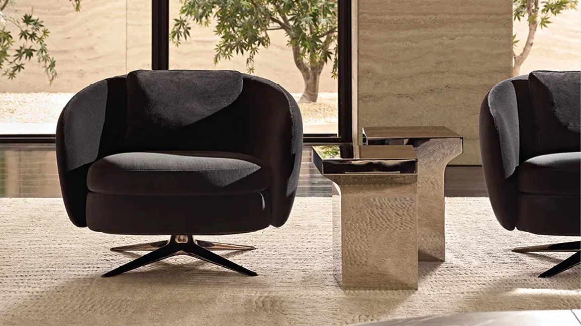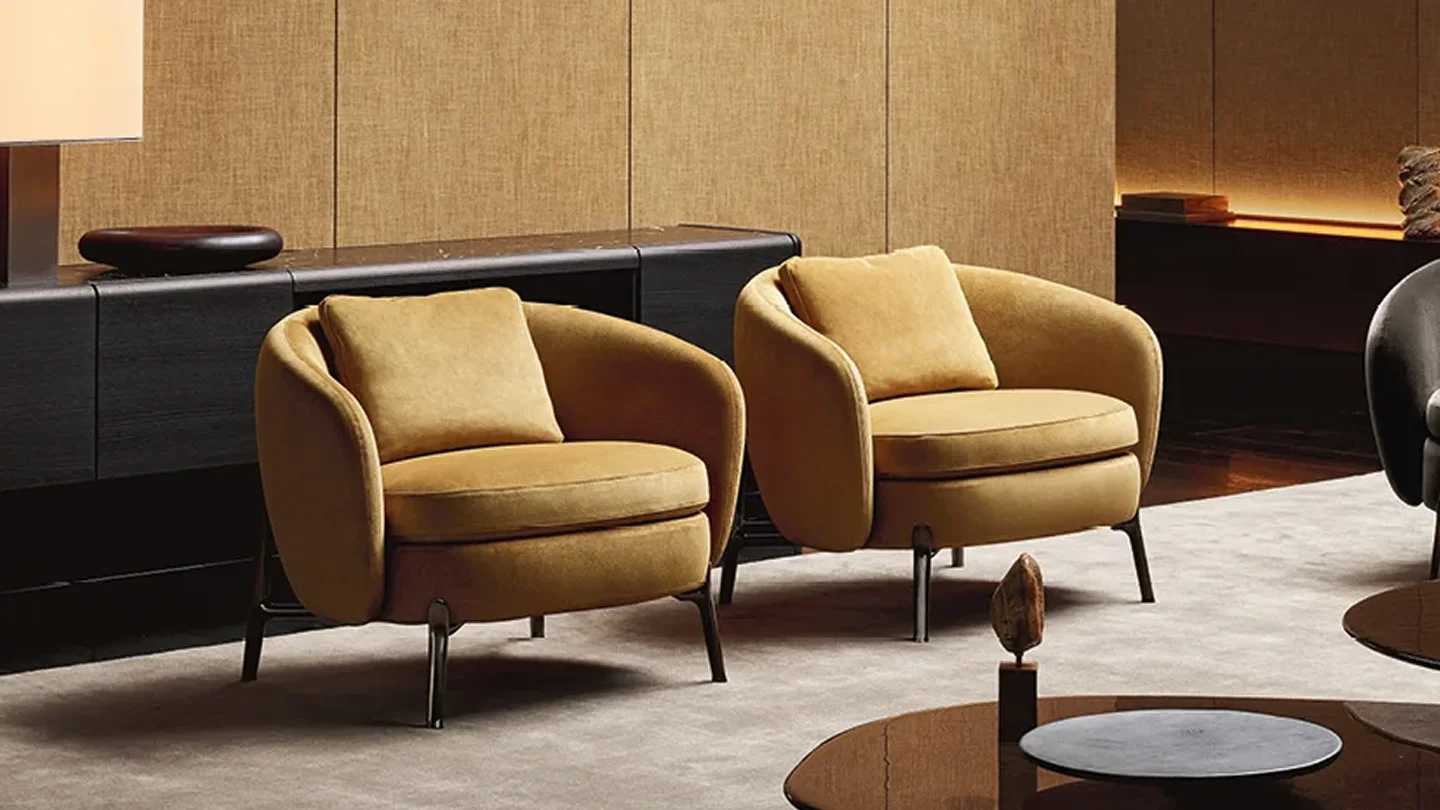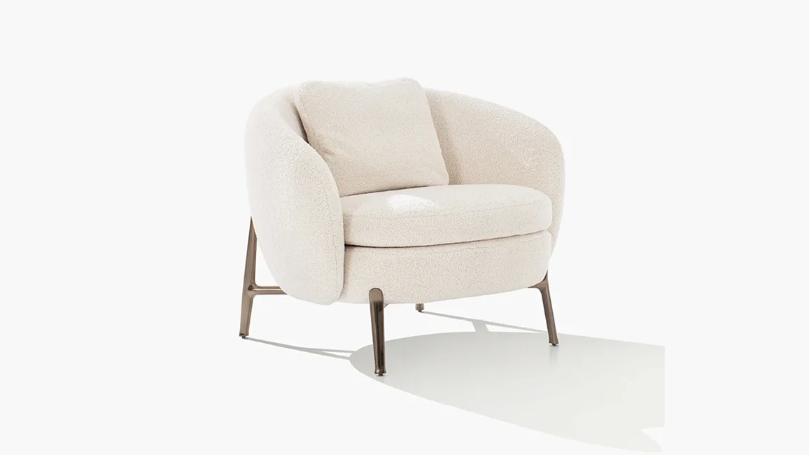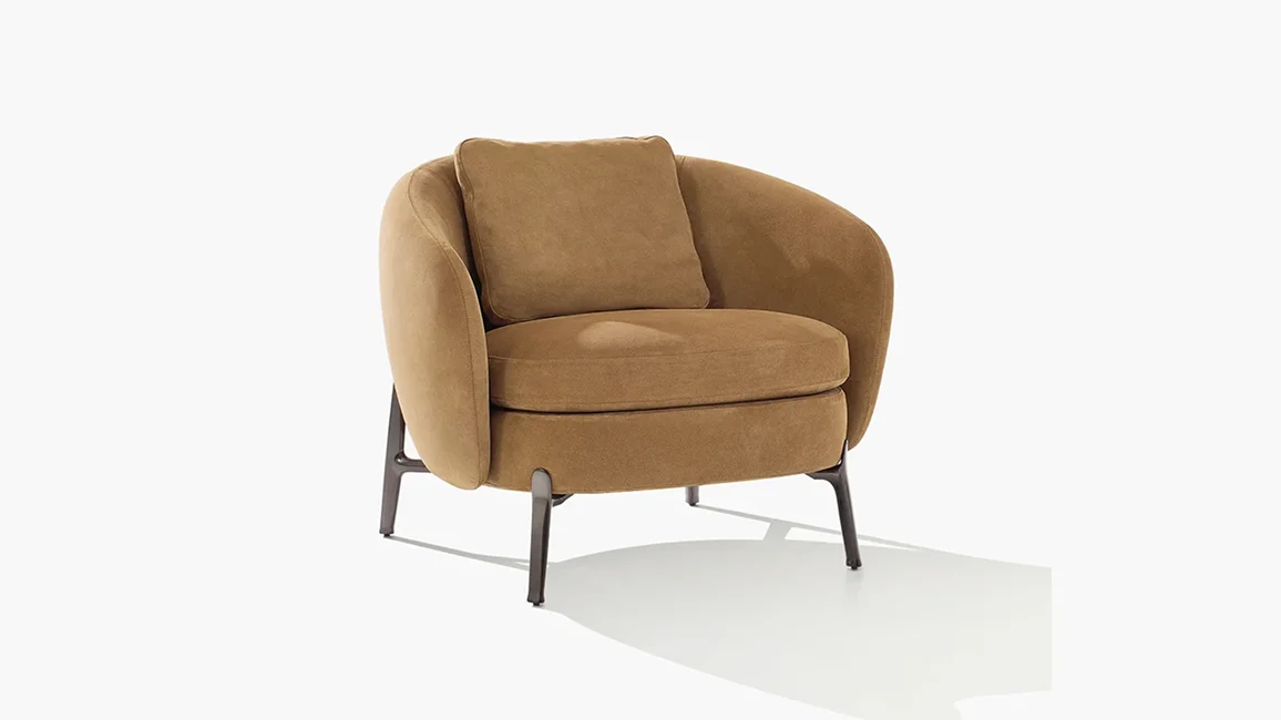 The Orbis collection brings a more intimate dimension of space to the world of Poliform. With its curved and enveloping backrest, the armchair invites you to carve out a private space in the living room to dedicate to conversation, relaxation and well-being. The generous volumes of the seat are counterpointed by thin metal feet, precious both in their workmanship and finishes.