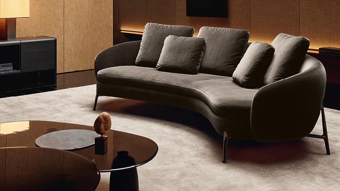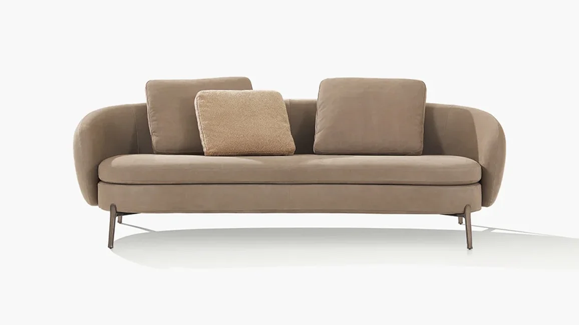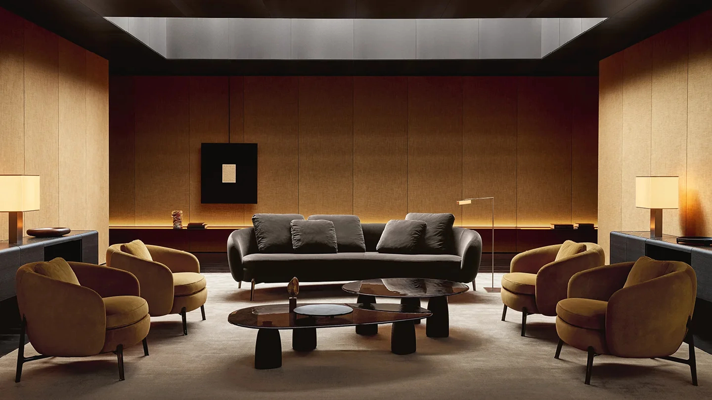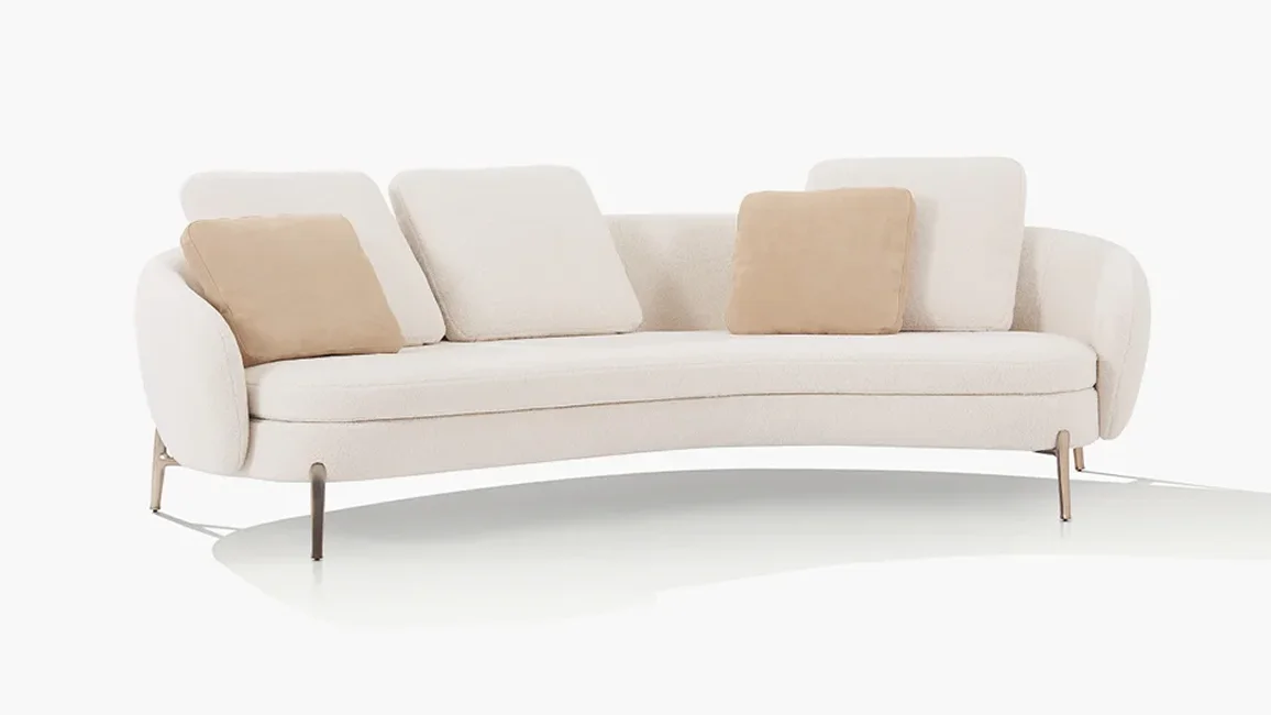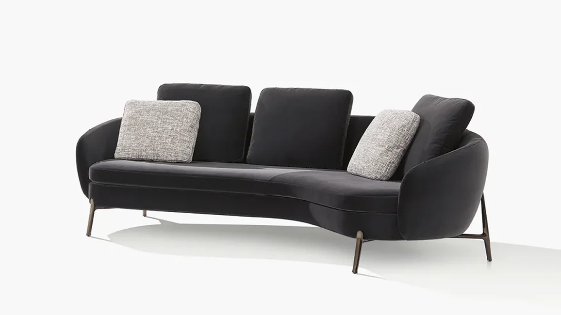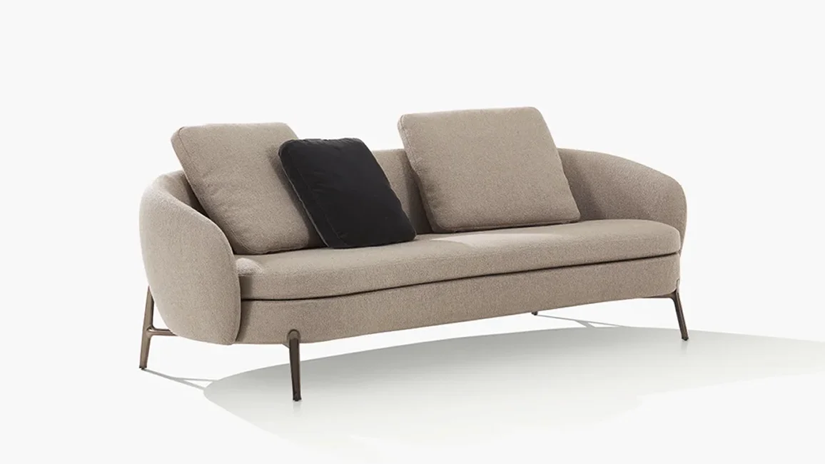 With its curved lines and soft forms, Orbis designs an intimate and cosy space within the living room. The collection consists of two sofas and an armchair with an enveloping backrest, a perfect synthesis of modern design and contemporary technology. In both the sofas and the armchair, the seat, raised off the ground by a thin leg inspired by jewelry workmanship, is comfortable and invites conversation.