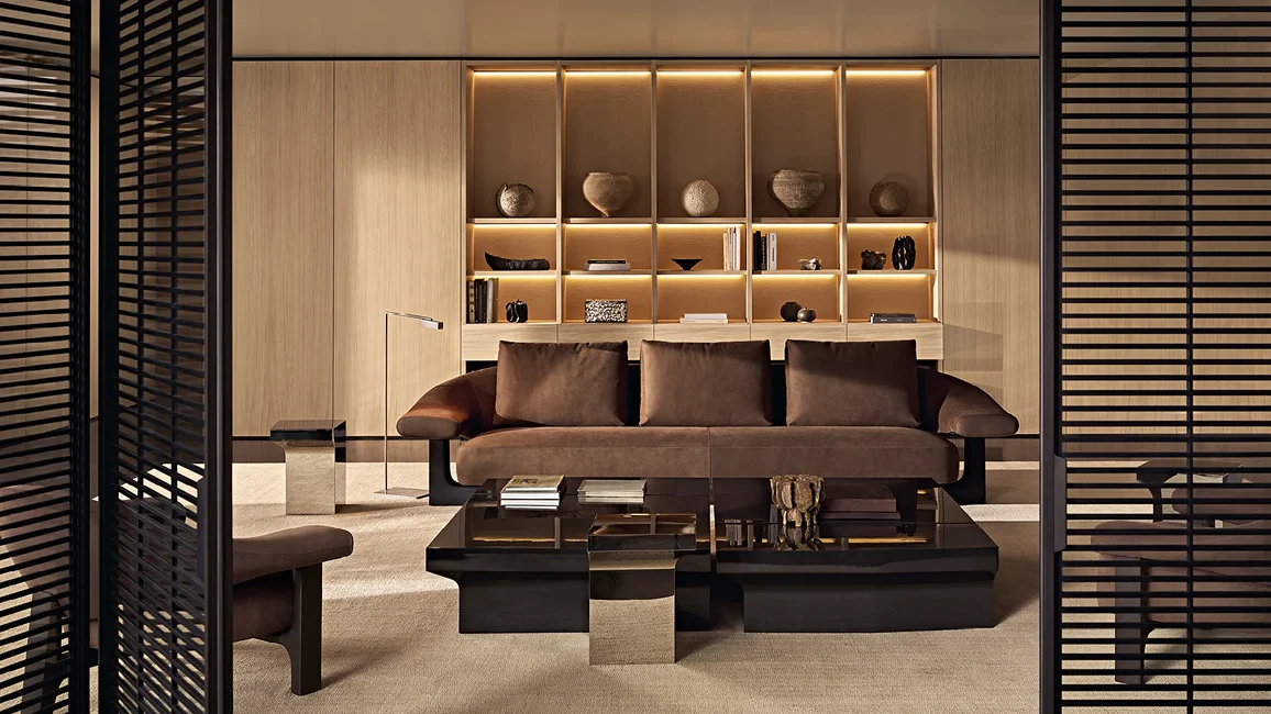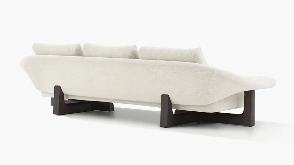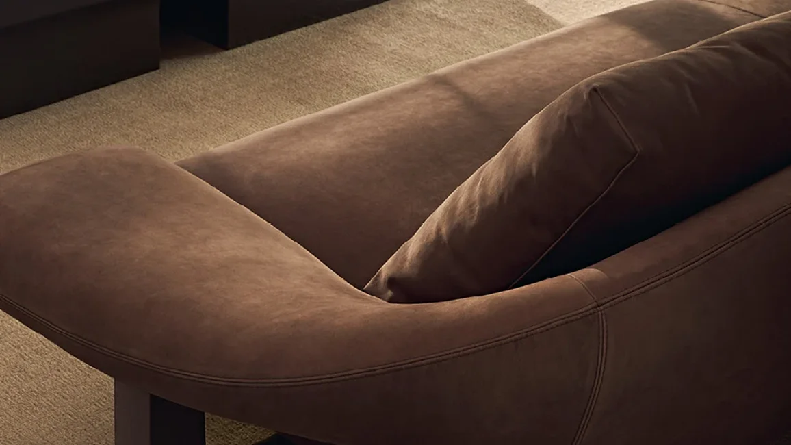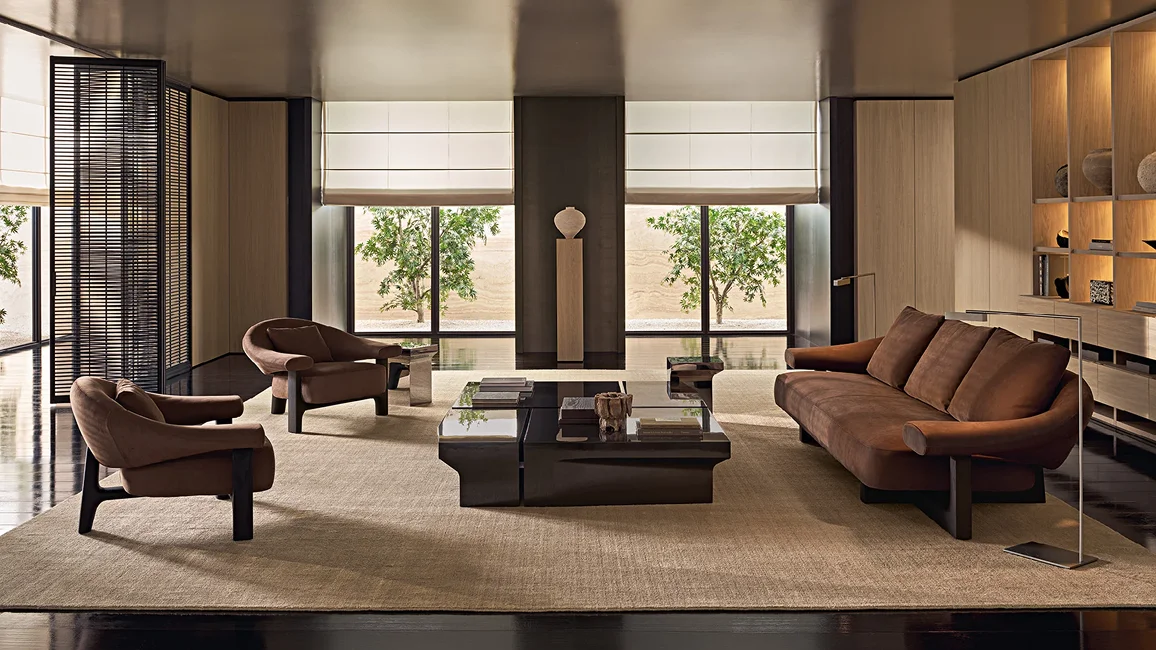 A cocooning design inspired by Mid-Century aesthetics. The Owen collection by Jean-Marie Massaud blends fluid, harmonious curves with a strong architectural foundation. In both the sofa and armchair, a wooden base supports plush, couture-inspired upholstery with organic contours. The standout feature is a sculptural backrest that elegantly folds onto itself, like a Möbius strip, seamlessly transitioning into the armrest.