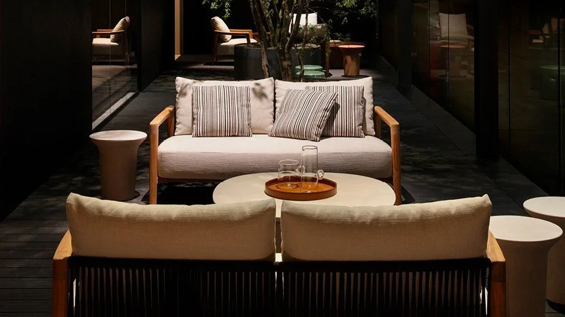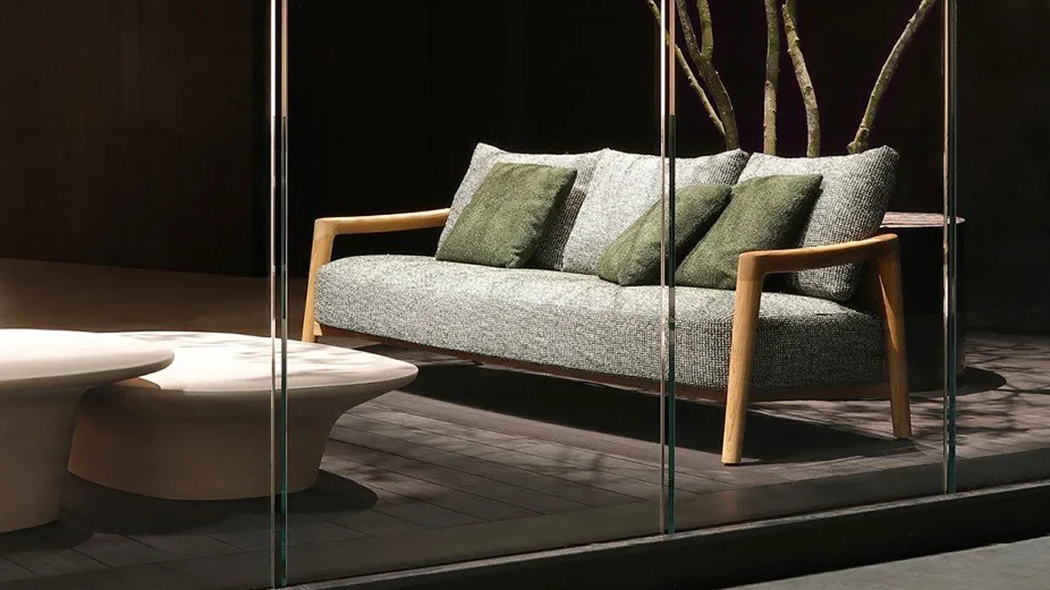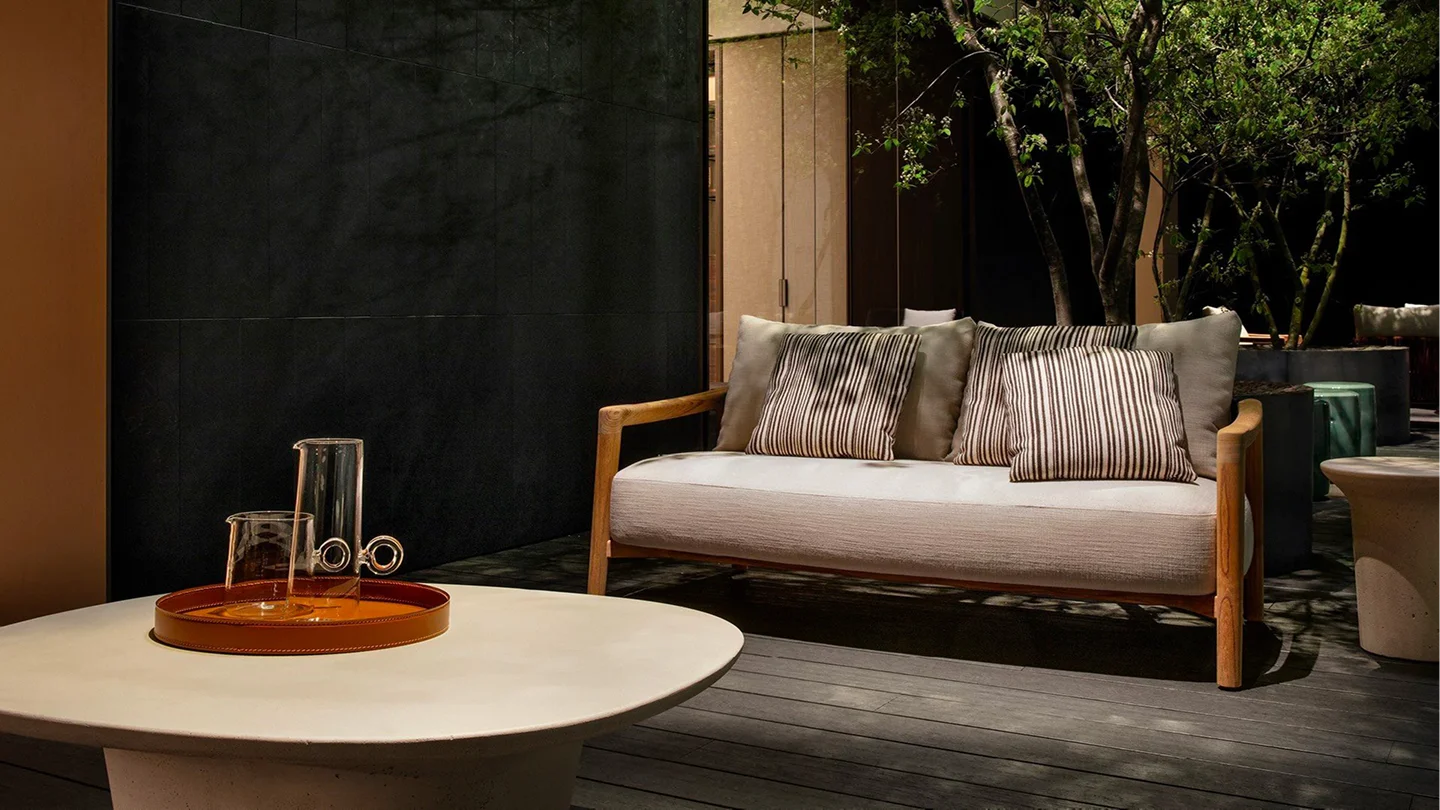 the Ponte Collection is inspired by the elegance of the nautical world. The architectural bridge-like structure of the armchairs and sofas gives a visual lightness and a sense of solidity at the same time.