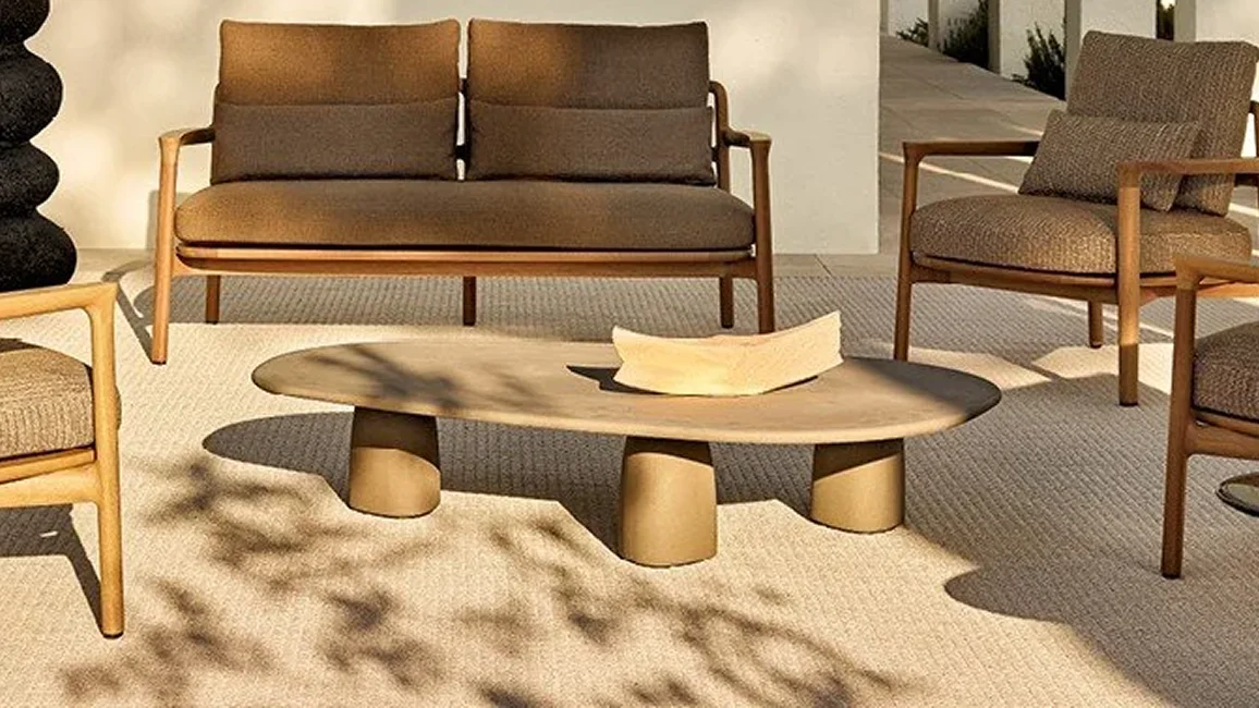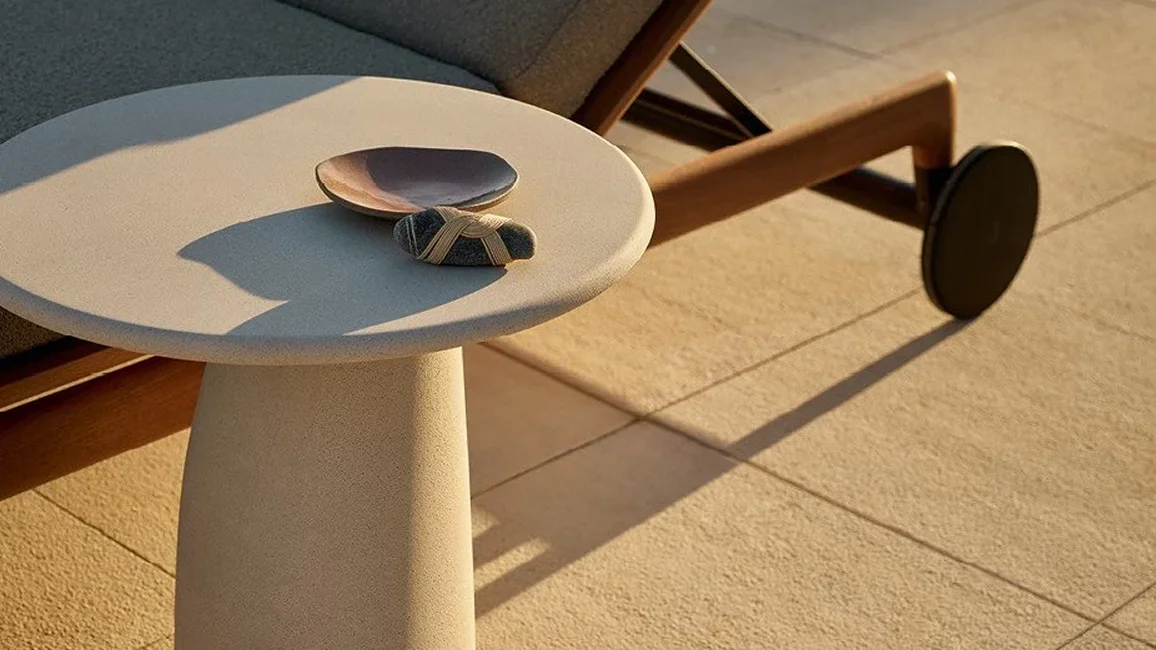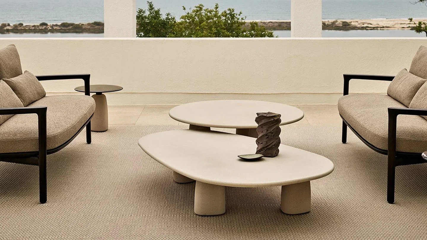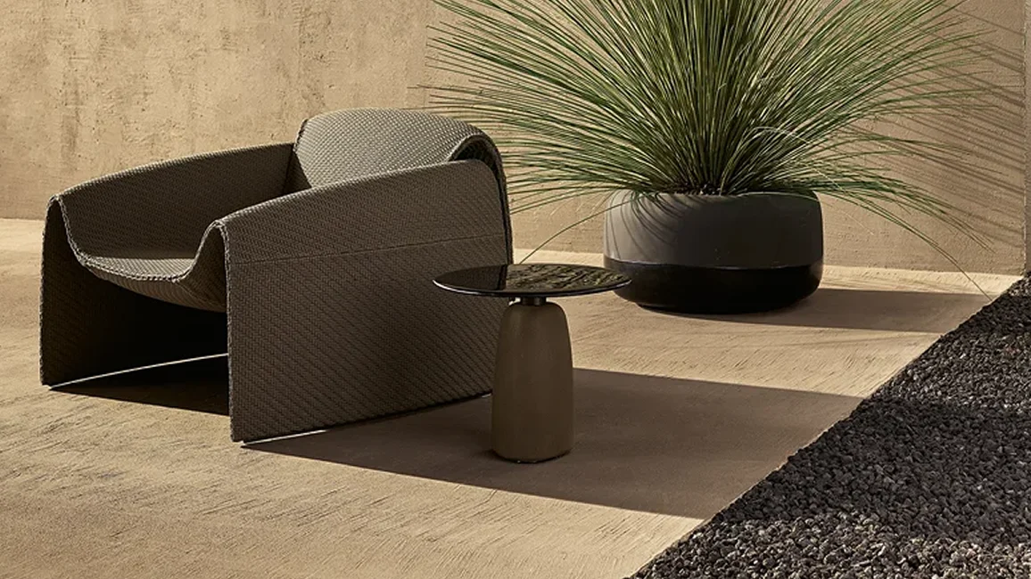 Originally created as an outdoor coffee table, Strata is now reinterpreted for indoor use, with olmo nero legs and a marble and glass top, in addition to a sculptural-looking travertine version. Available in different sizes and heights, with round or organically shaped tops, Strata exudes a peculiar uniqueness, matching all the sofas in the collection.