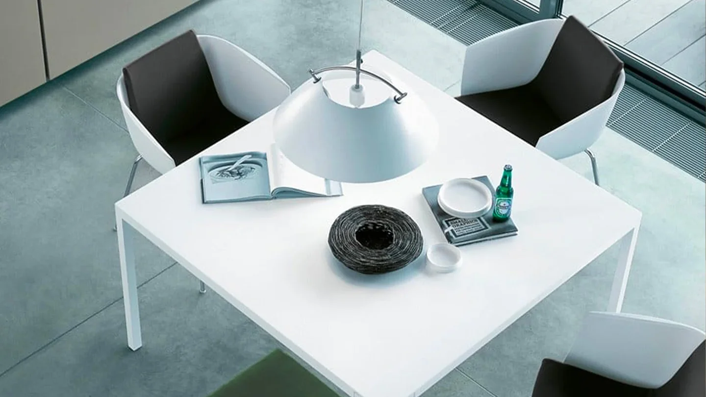 Because of its minimalistic design made of ephemeral geometry and thicknesses, Trevi is a table that can adapt to several environments of the house. Available in square or rectangular version, it has the top and legs in mat lacquered finish, also in an anti-scratch version.