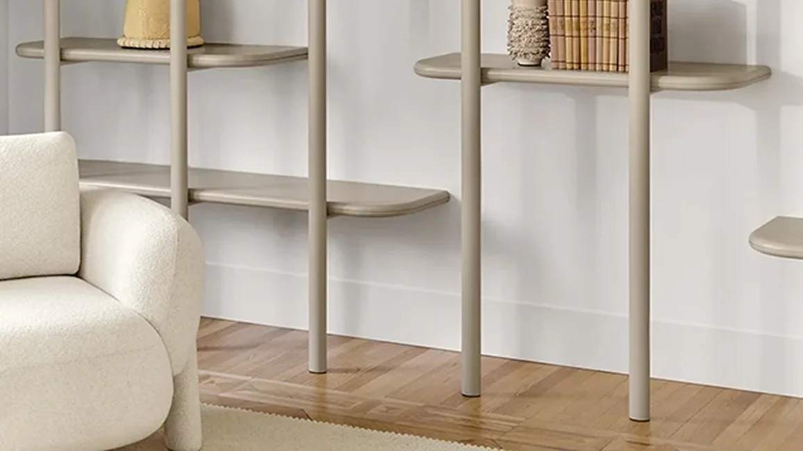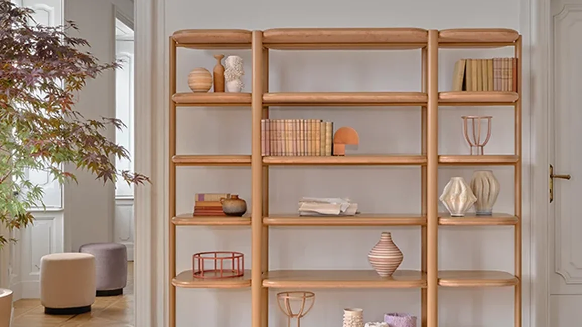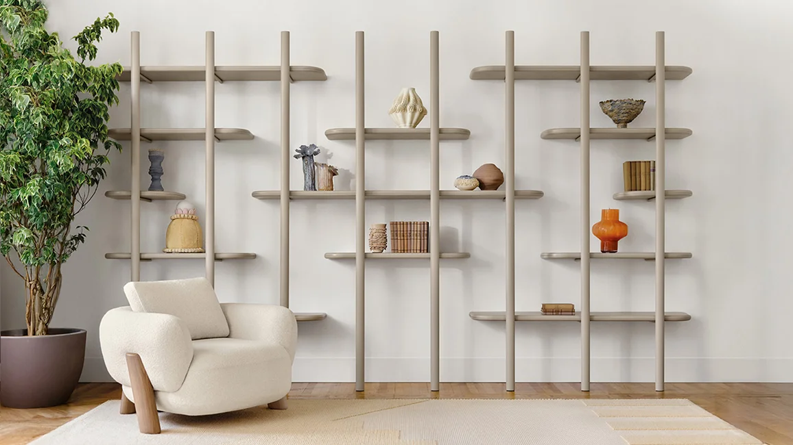 Like a staircase leading to infinity, the Anam bookcase develops gently, finding balance between lightness and solidity.