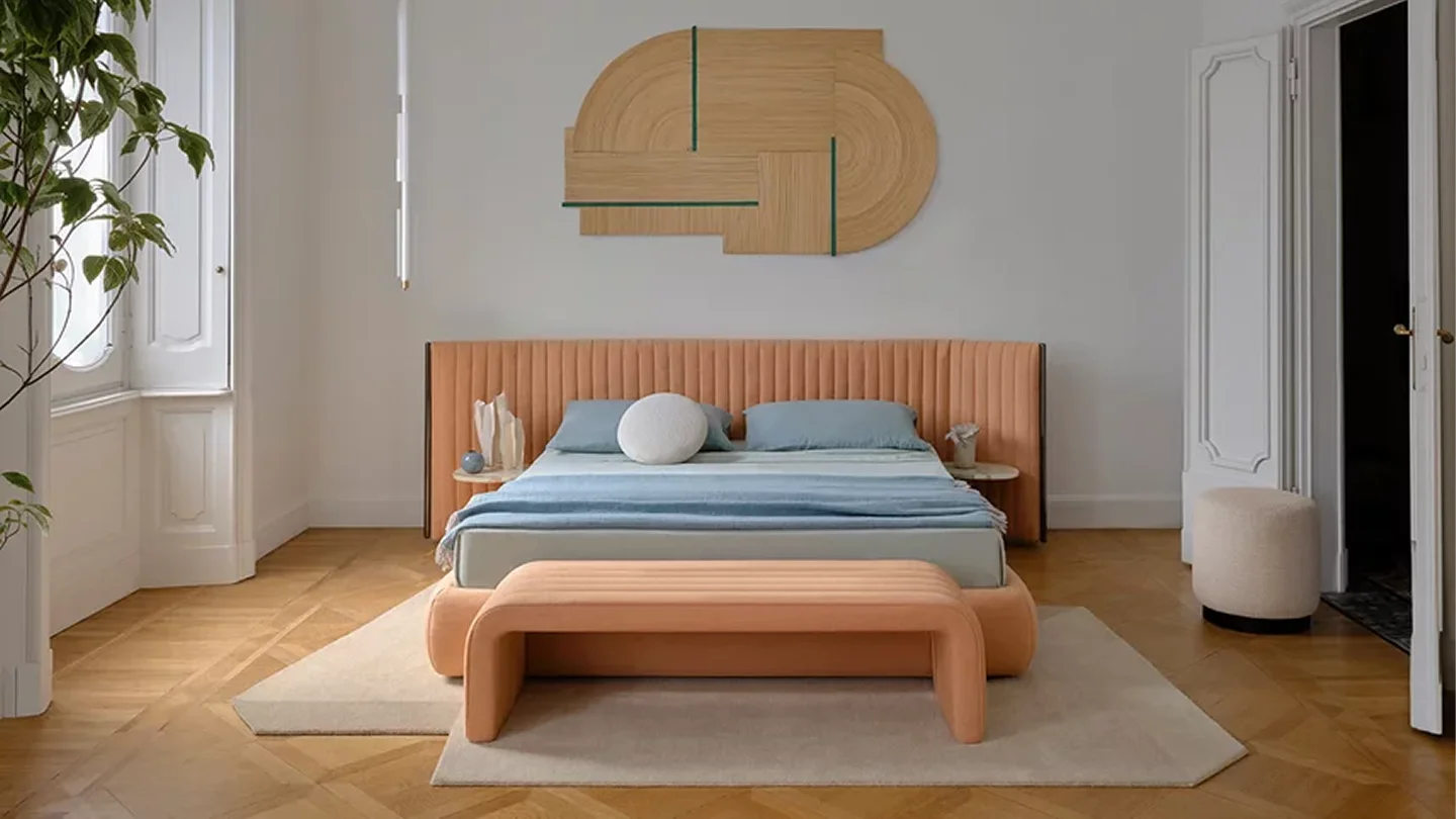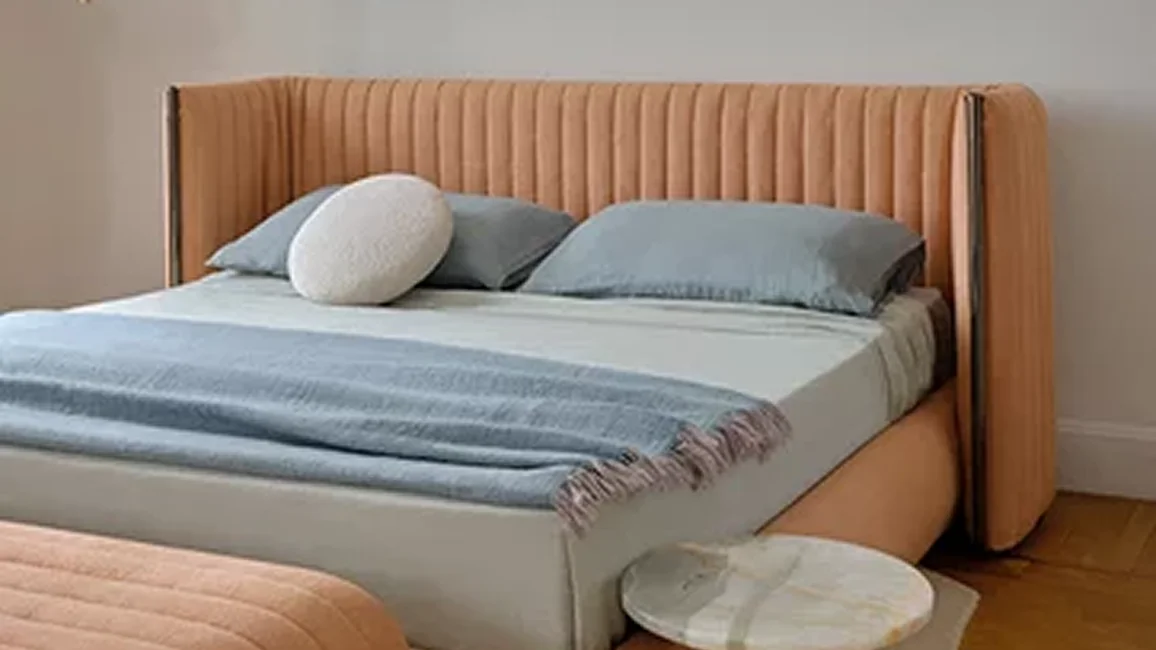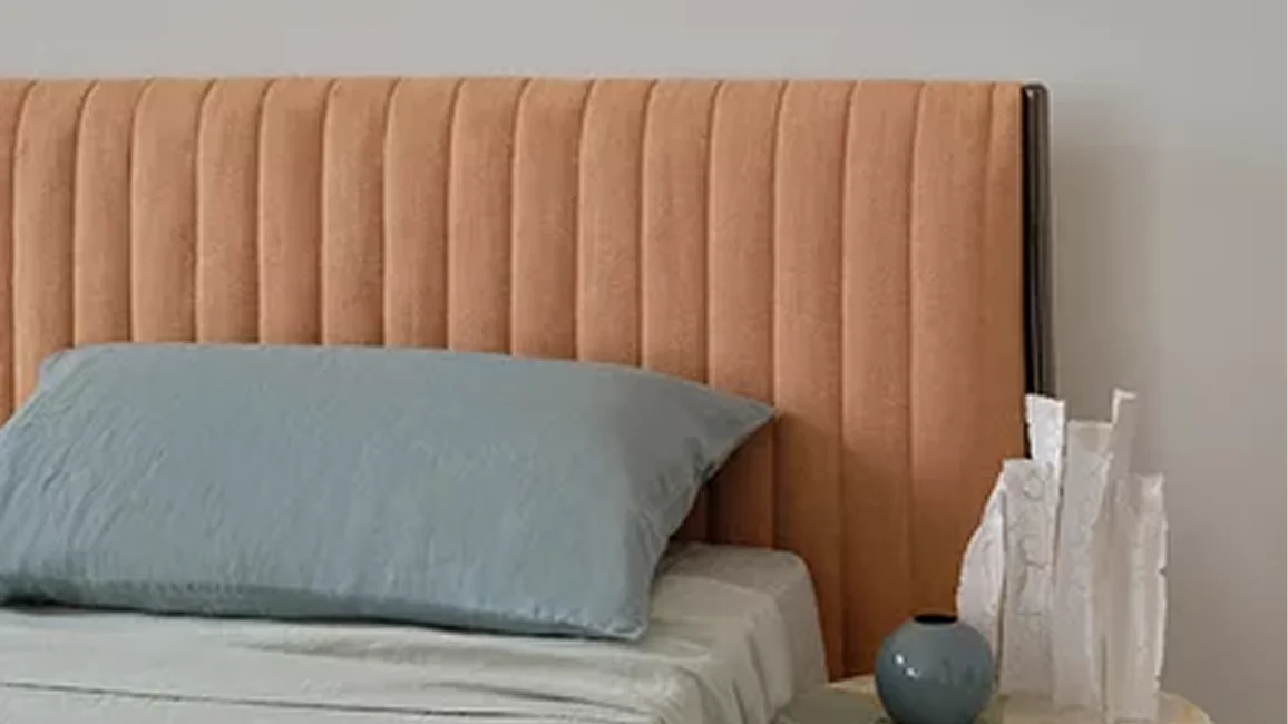 The timelessness of its form meets the modern concept of flexibility applied to materials. The classic quilted headboard becomes malleable with a simple gesture and reinvents the frame: open and graphic, then geometric and airy, or protective and intimate. The gaze widens and closes and each time rests on a perfect image.