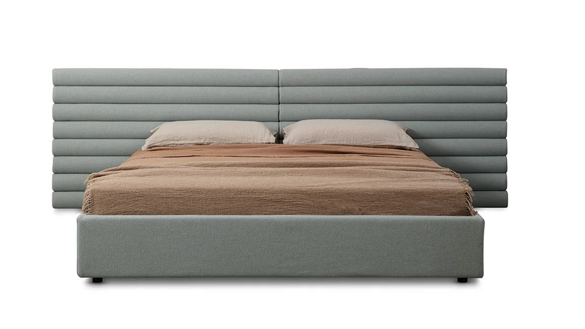 Perfect for contract and residential environments, it can be purchased individually or accompanied by its sommier. Available in two sizes, it embraces both small bed frames and large mattresses.