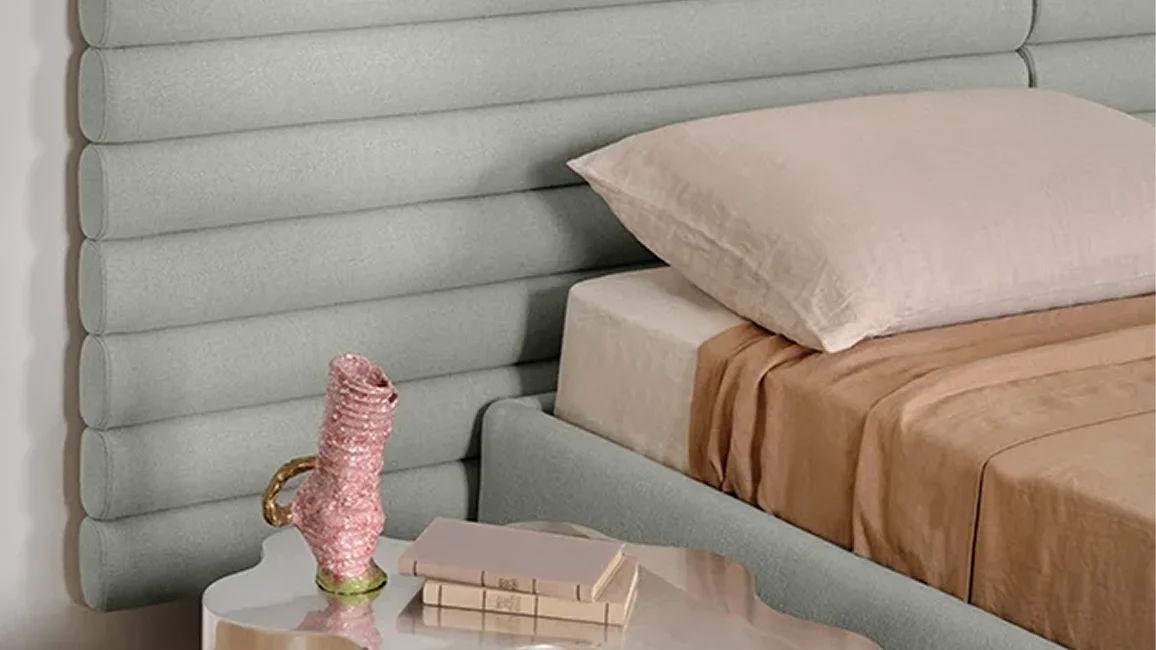Inspired by the armchair and bench of the same name, the Pan Flute headboard draws on the wall like a musical score. Conceived as a boiserie, its circular volumes invite you to customize the wall with original textures.